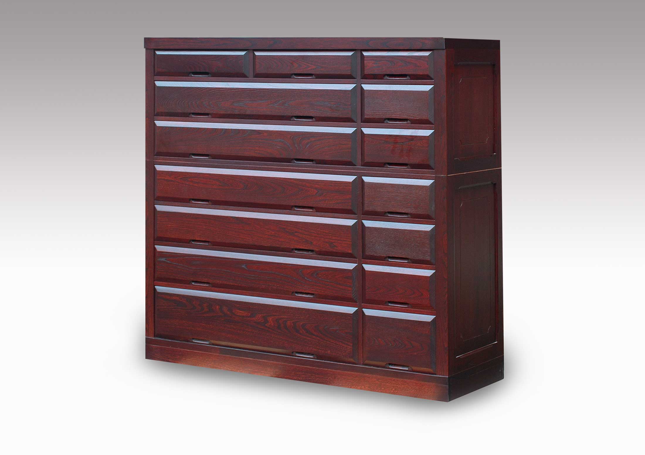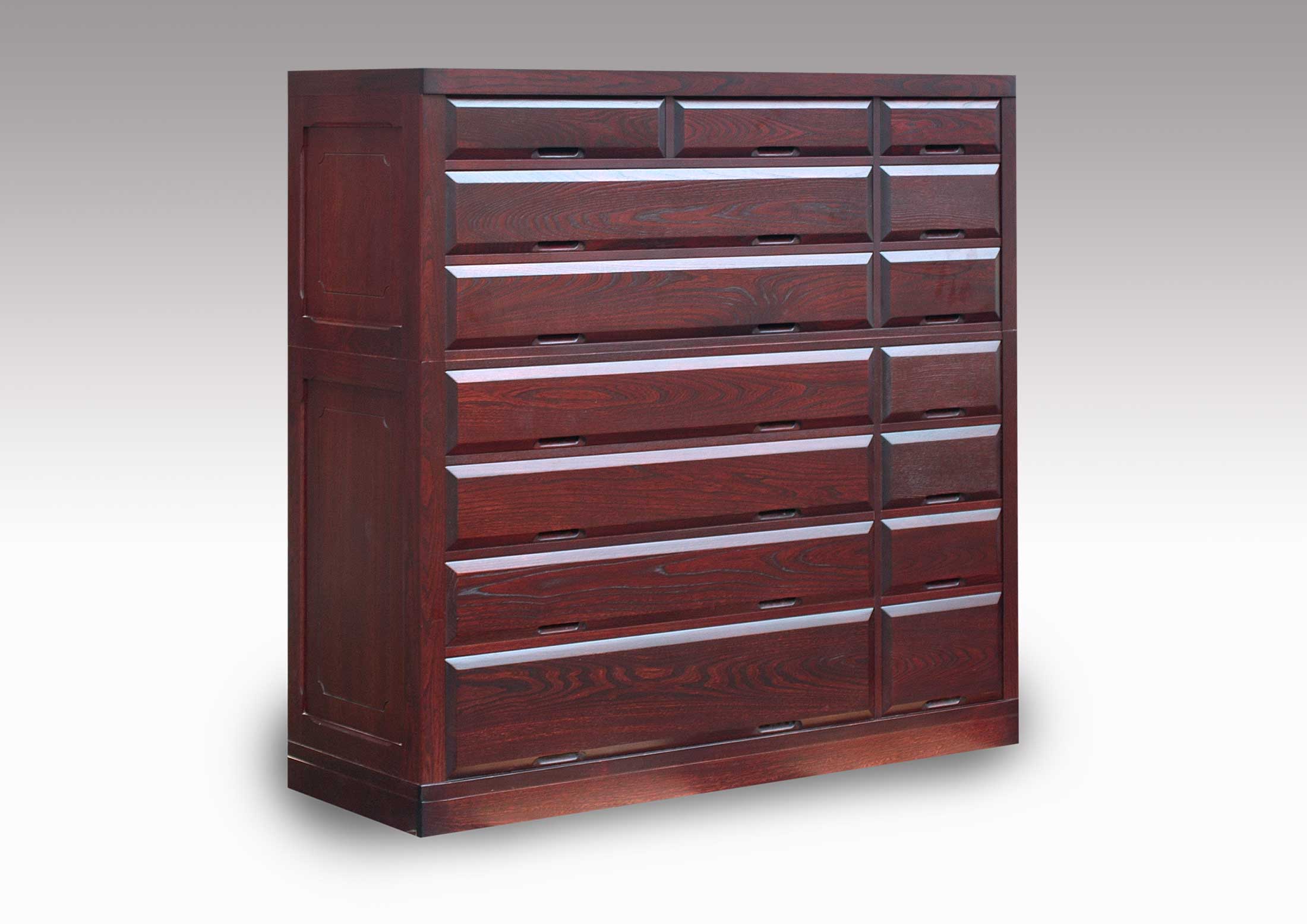 江戸箪笥はどの様なご注文にも対応できます。材料もニレ、タモ、ナラ、クルミの4種類からお好みの材料で作成できます。又、ご希望の寸法でオリジナルな和家具が製作可能です。
