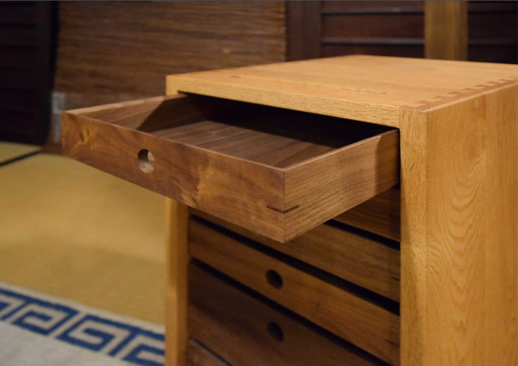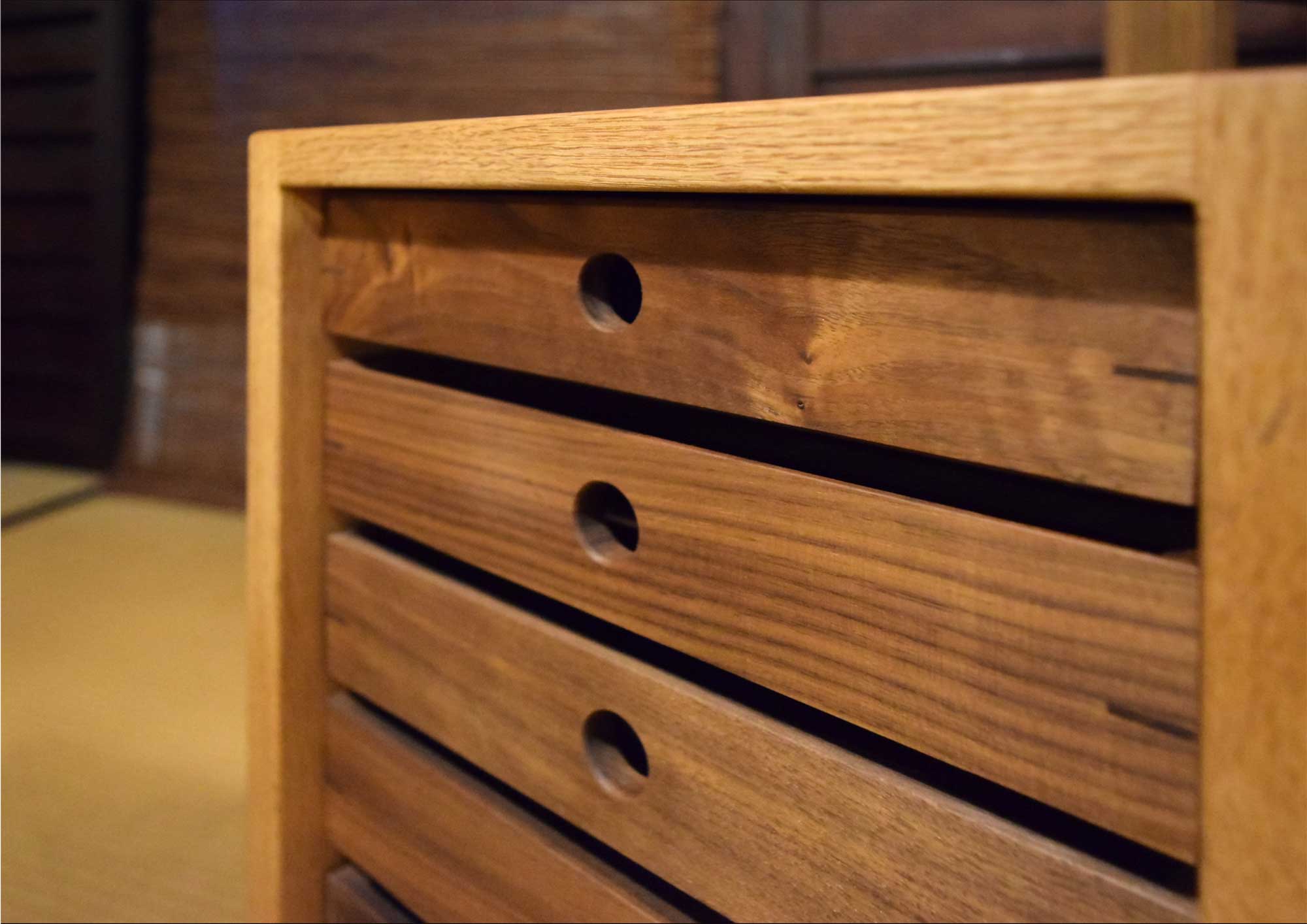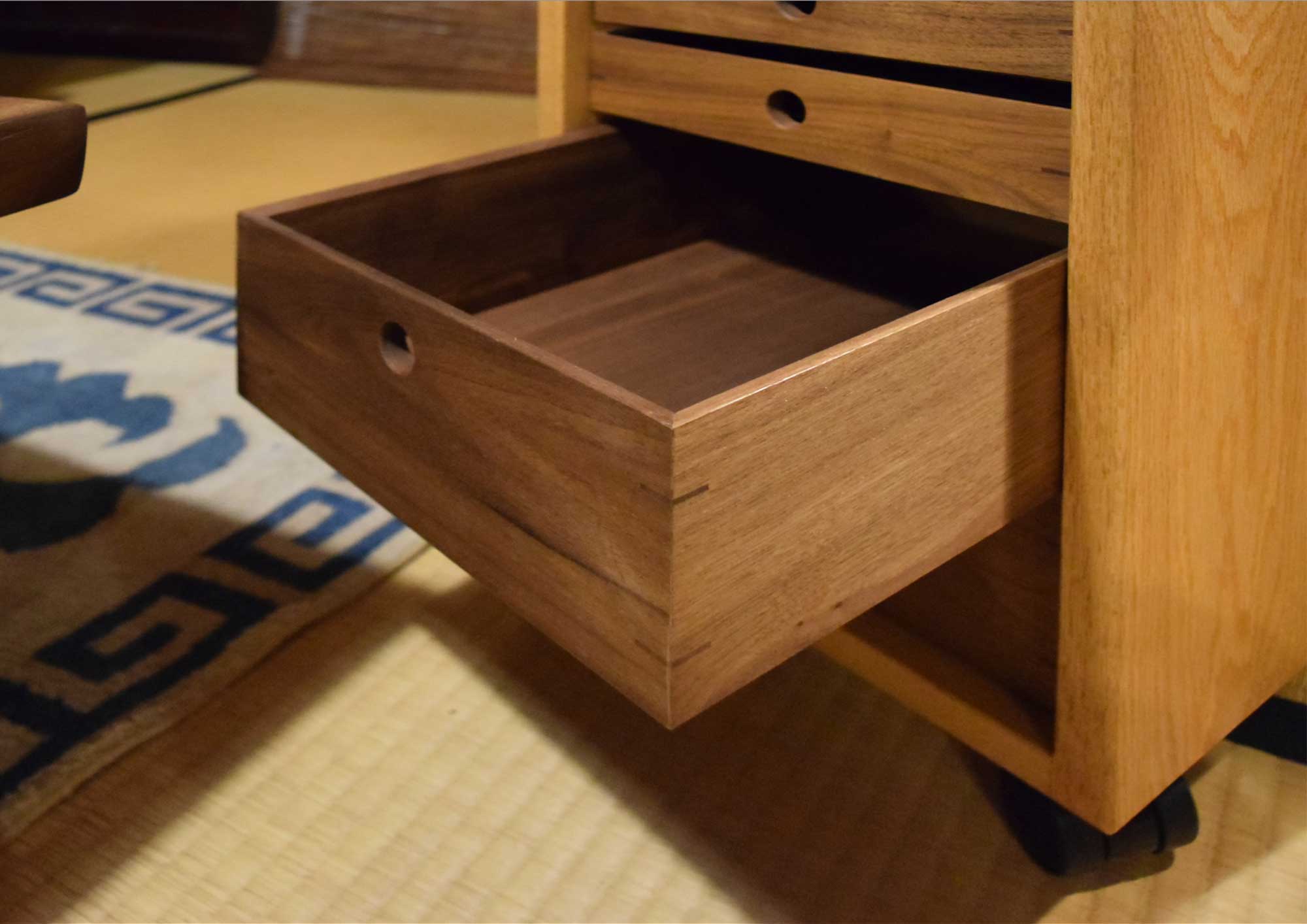 3. 引出の内部もウォールナット材です。