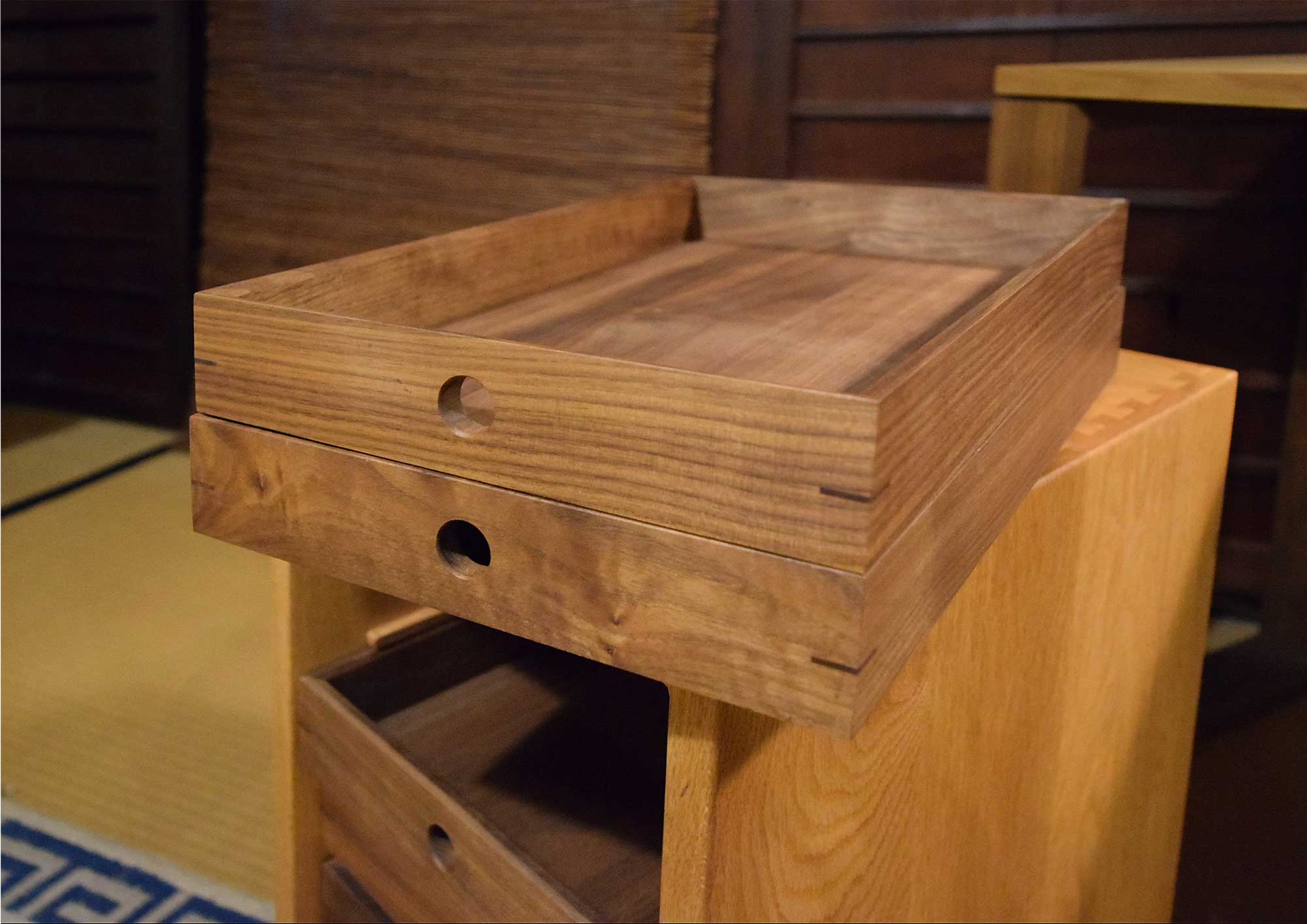 2. 引出はお盆代わりとして使え、重ねることも出来ます