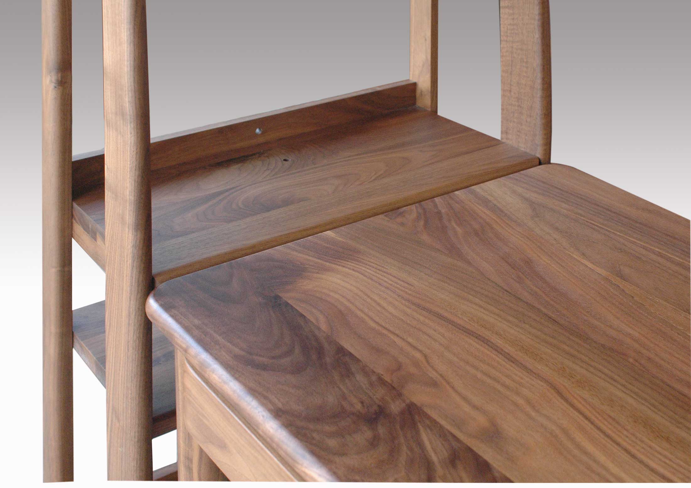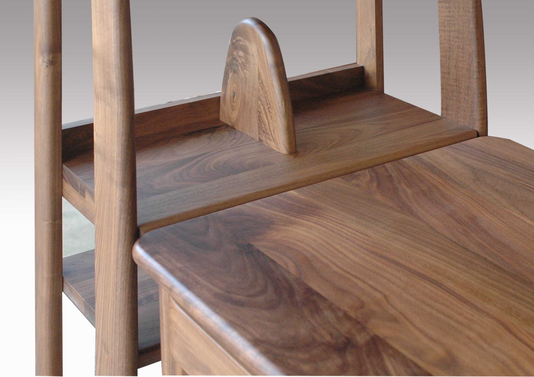 ハイクオリティーを感じさせてくれるMADE IN JAPANならではのがっちりとしたデスクシェルフは、ウォールナット材の総無垢でで安心して末永く使えます。