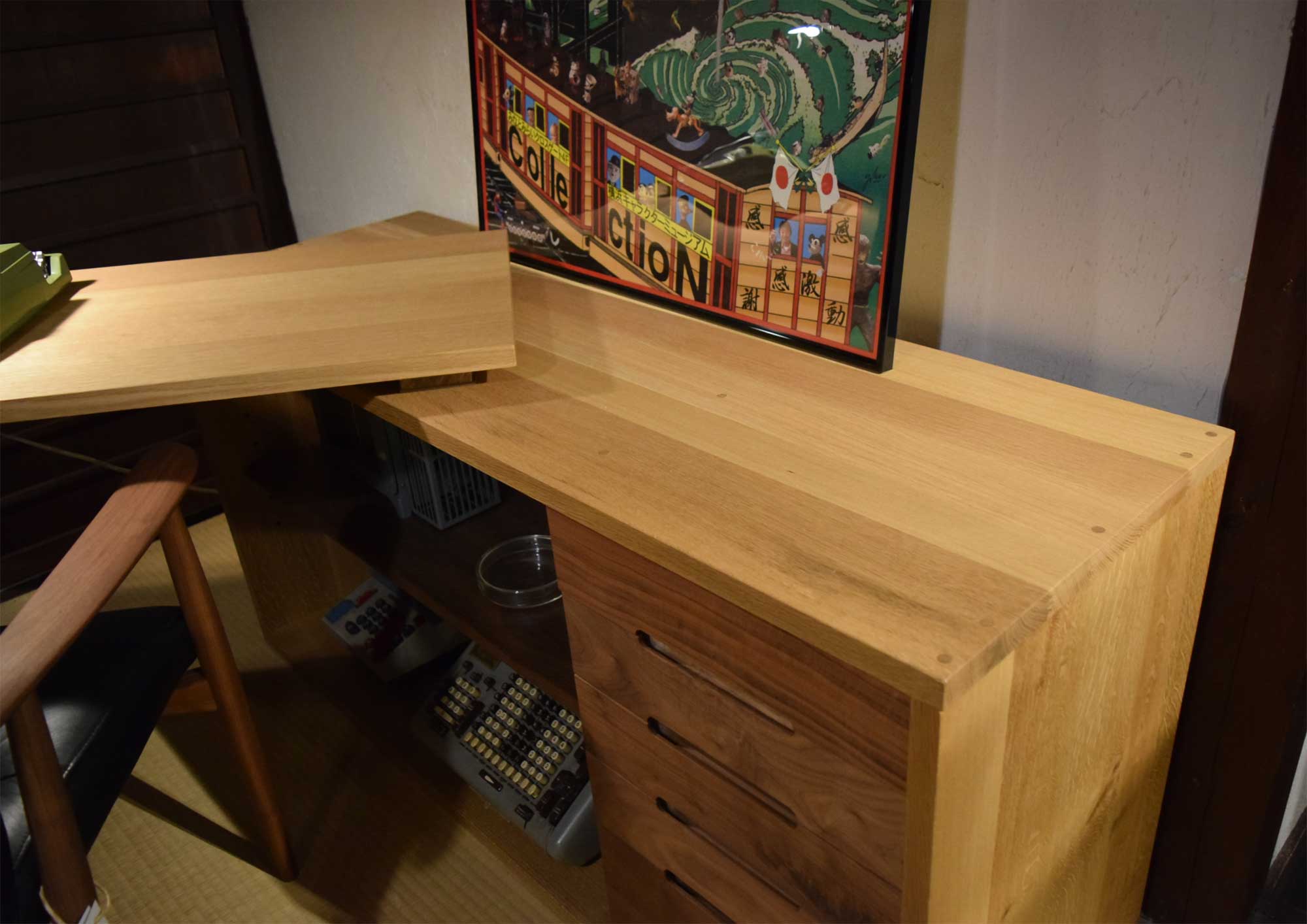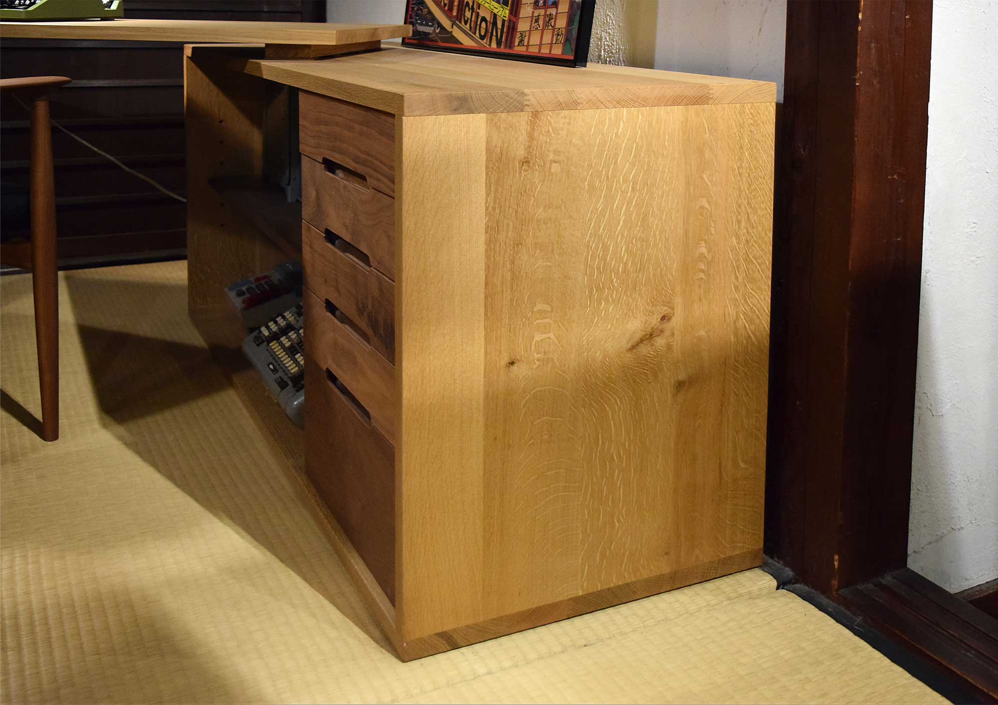 1. ウォールナット・オーク材の総無垢で使い込むほどに味わいが増してきます。