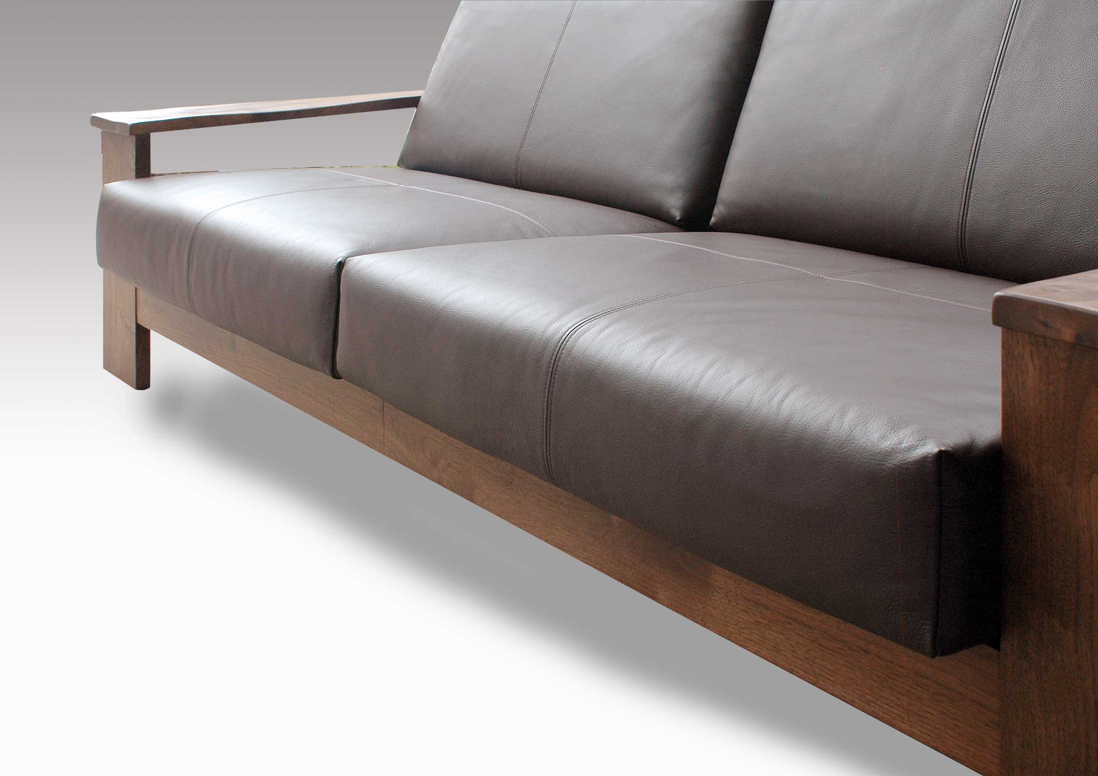 ウォールナットの無垢材ソファー オイルレザー ヌメ革ソファーの専門店