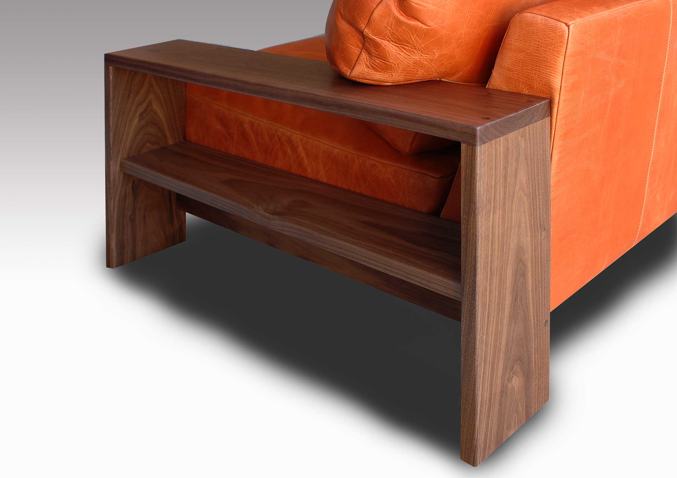 - ウォールナットの肘置きはテーブルとして、ちょっとした収納として使えます。