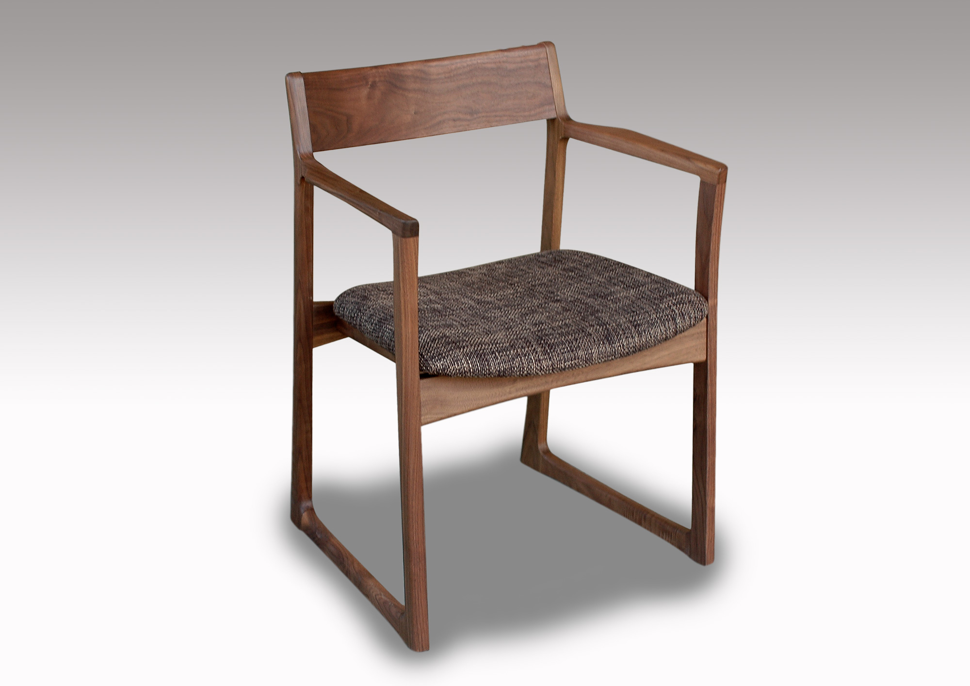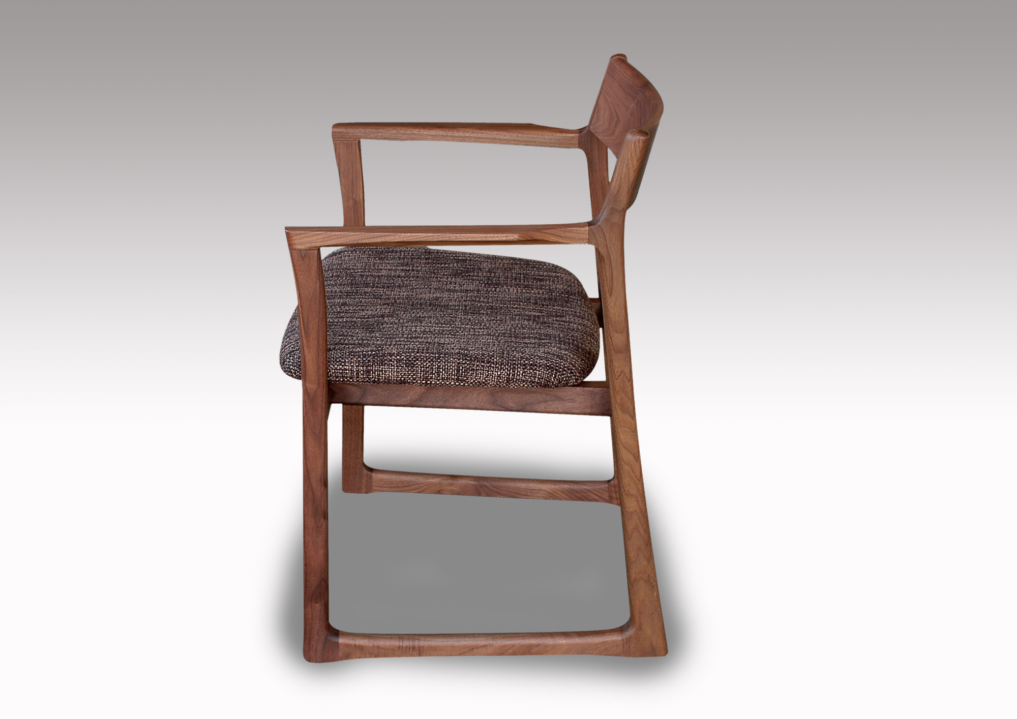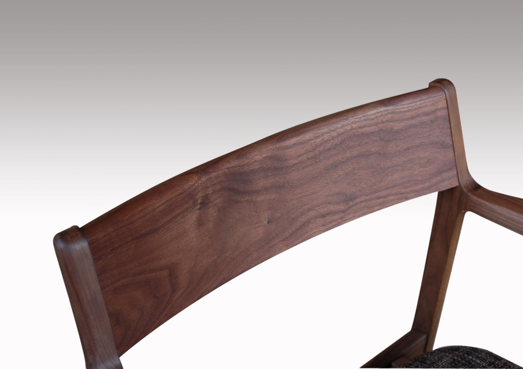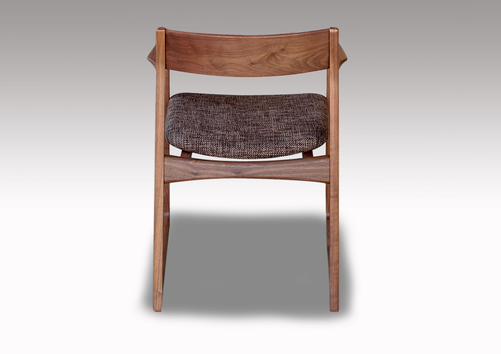 軽快なイメージのチェアーです。無垢材を柔らかなカーブに削り出したフォルムは細身ですが、木の味わいがたっぷりです。背板は曲げ木の無垢板で、安楽な座り心地、ゆったりとくつろげます。どんなテイストの空間にも違和感なく溶け込み、誰からも愛される、そんなウォールナット無垢材のダイニングチェアです。