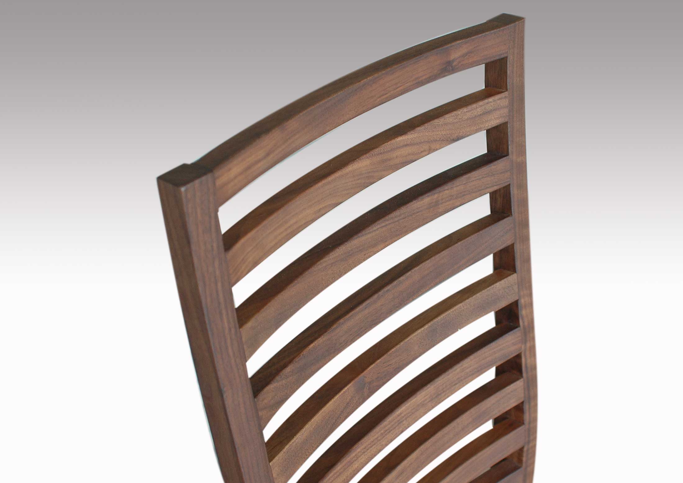 ハイバックの緩やかな背のカーブが身体にやさしくフィットしてとても座り心地の良いダイニングチェアーです。やや重厚でそれでいてエレガントなフォルムは、どの様なテイストの空間にも違和感なく溶け込み、誰からも愛される、そんなウォールナット無垢材のダイニングチェアです。