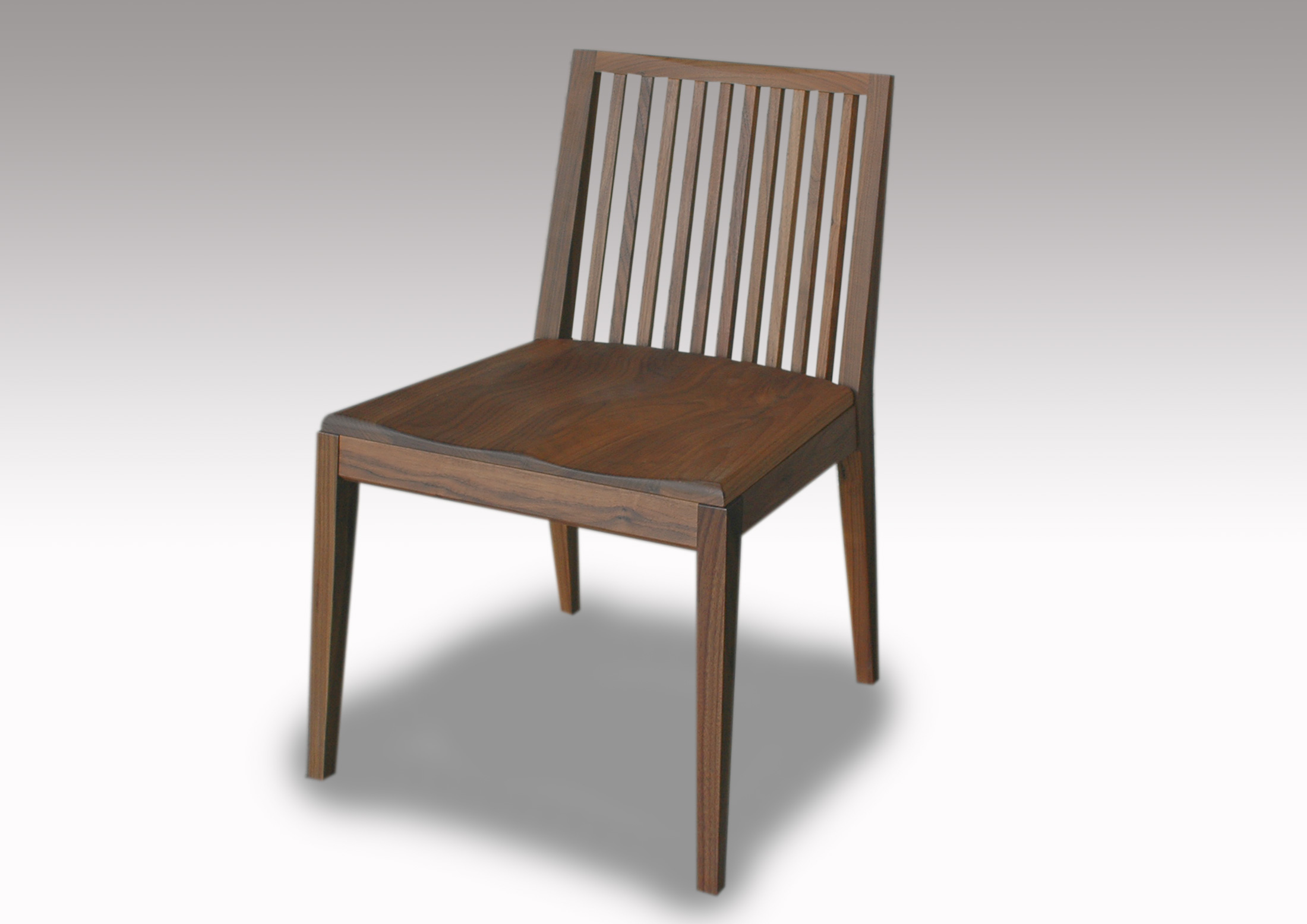 緩やかな背のカーブが身体にやさしくフィットしてとても座り心地の良いダイニングチェアーです。やや重厚でそれでいてエレガントなフォルムは、どの様なテイストの空間にも違和感なく溶け込み、誰からも愛される、そんなウォールナット無垢材のダイニングチェアです。