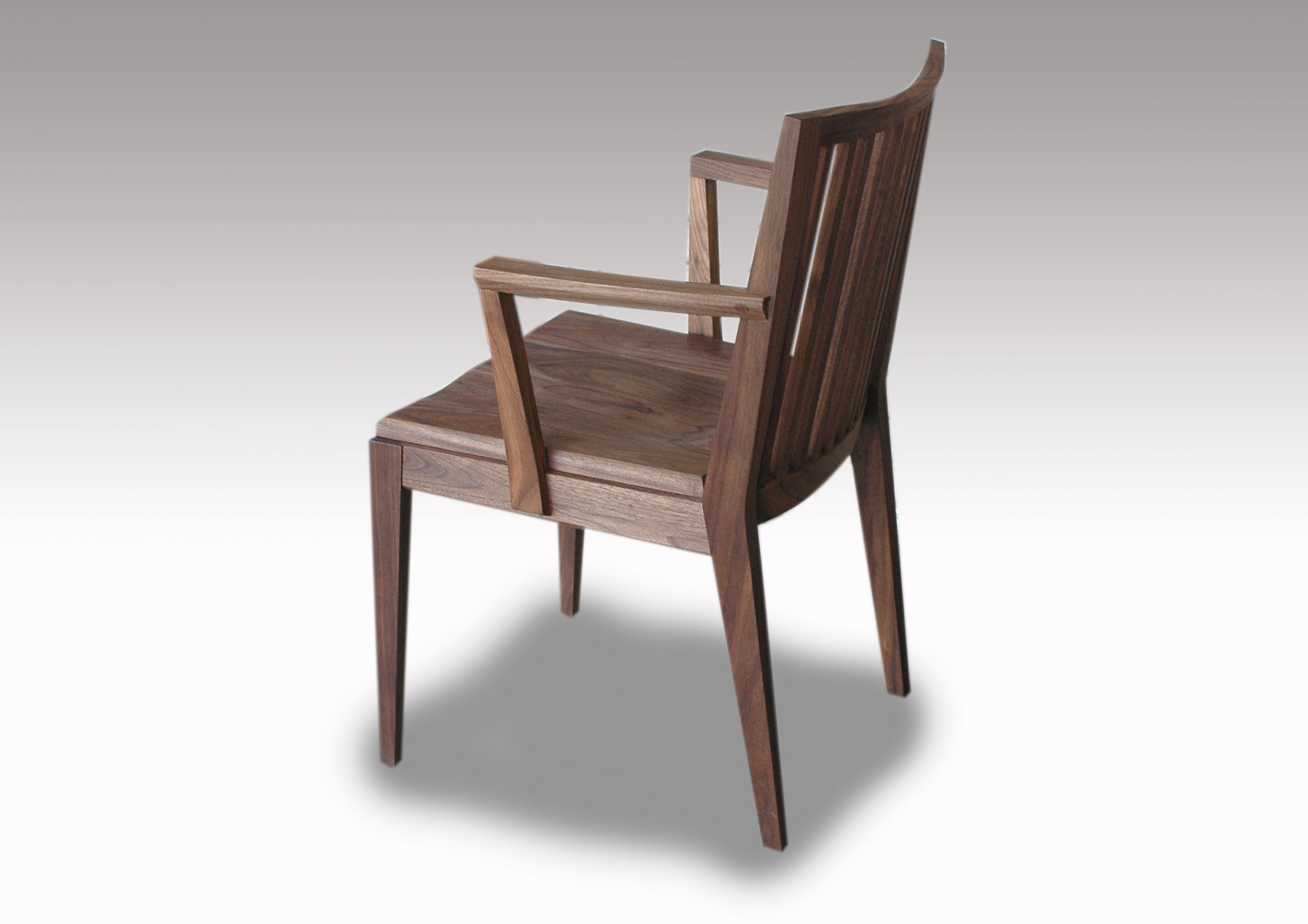 緩やかな背のカーブが身体にやさしくフィットしてとても座り心地の良いダイニングチェアーです。やや重厚でそれでいてエレガントなフォルムは、どの様なテイストの空間にも違和感なく溶け込み、誰からも愛される、そんなウォールナット無垢材のダイニングチェアです。