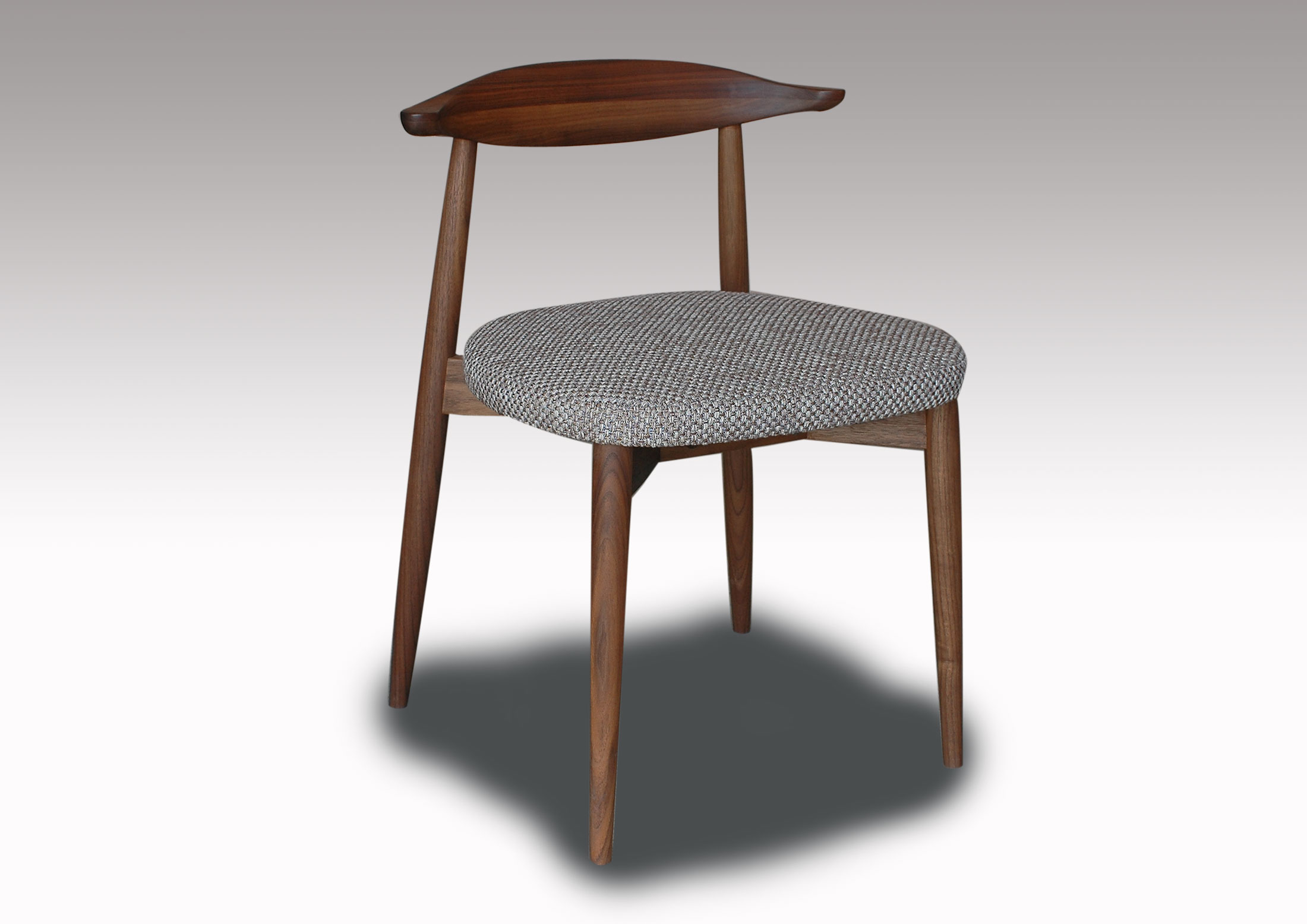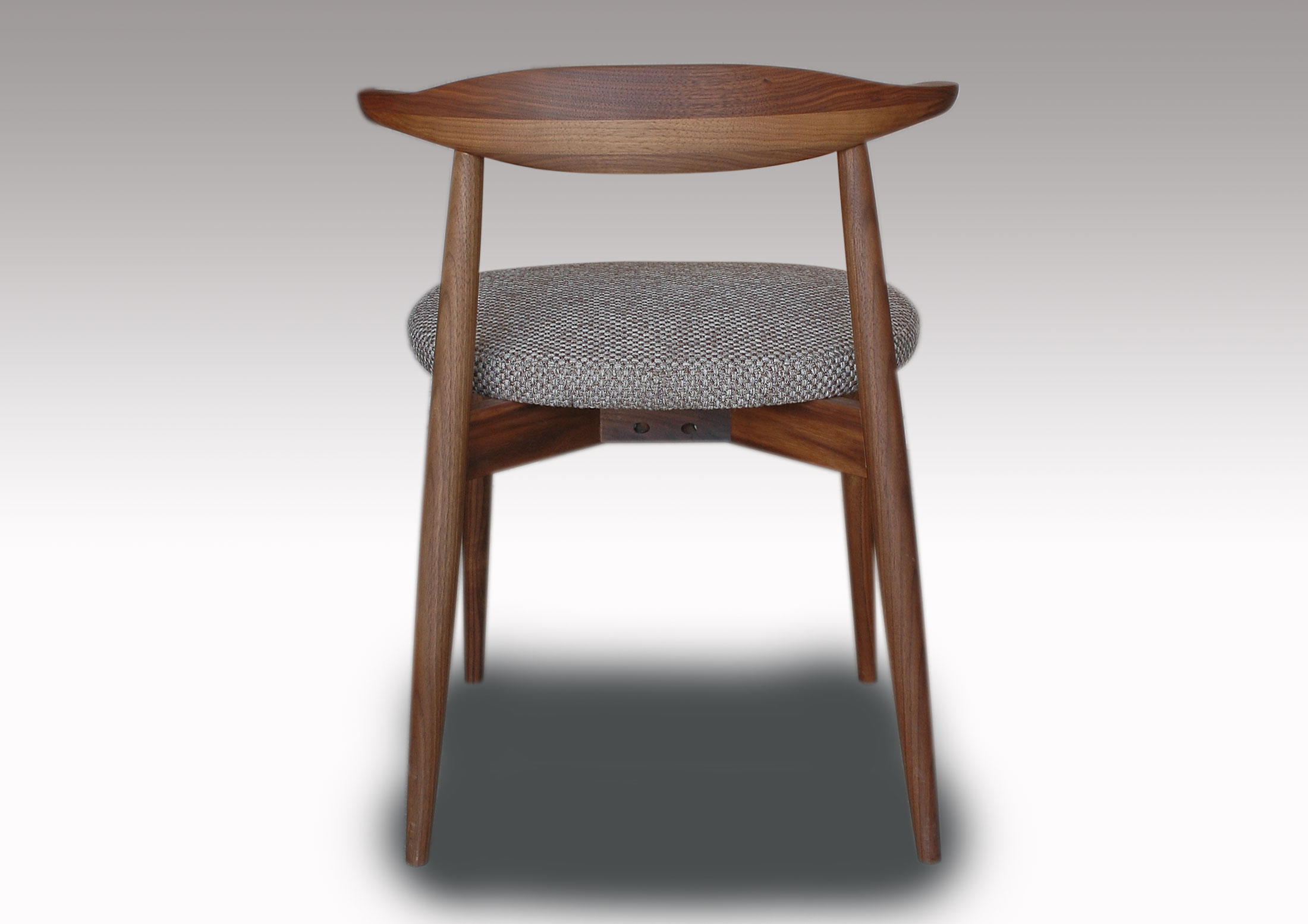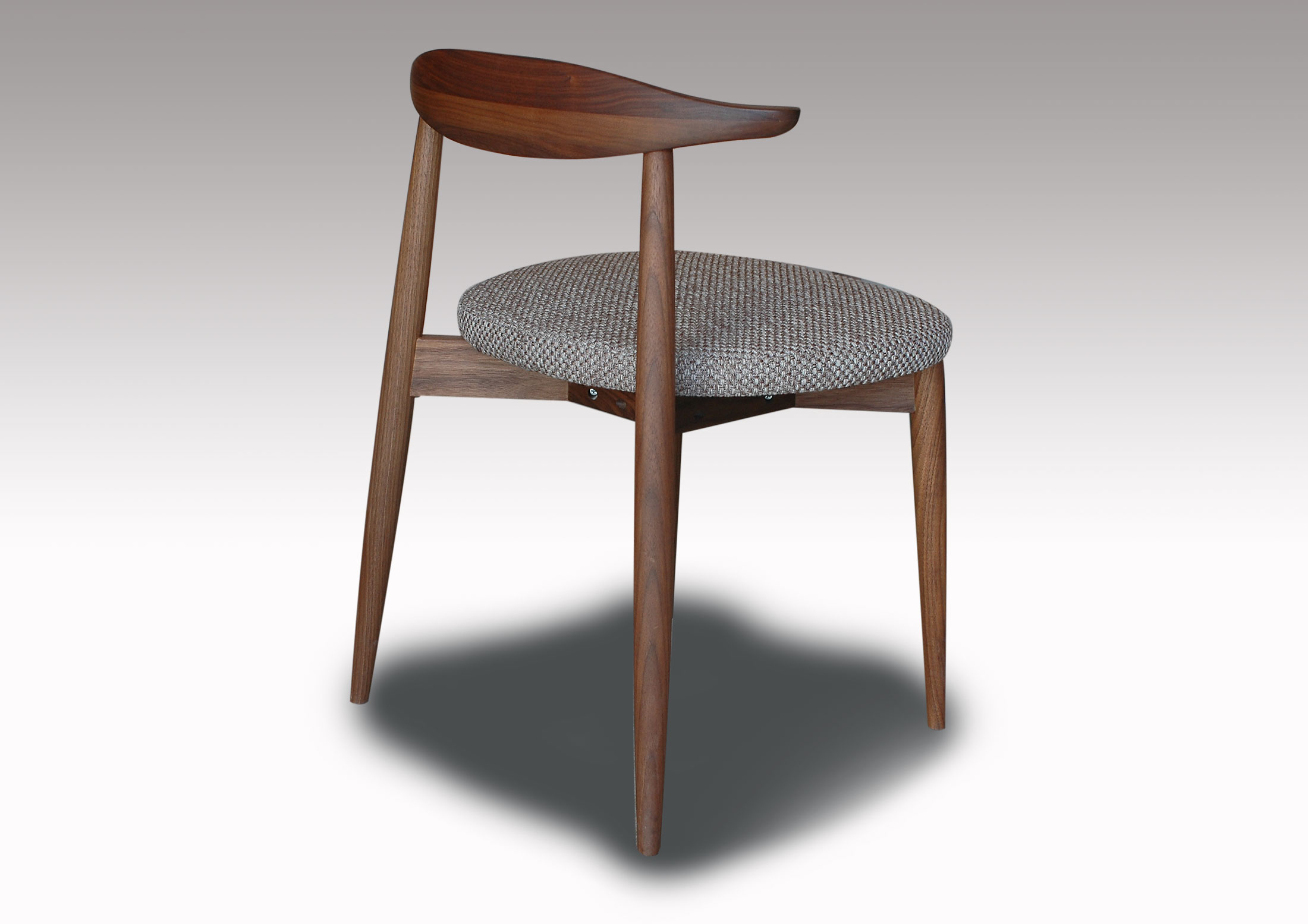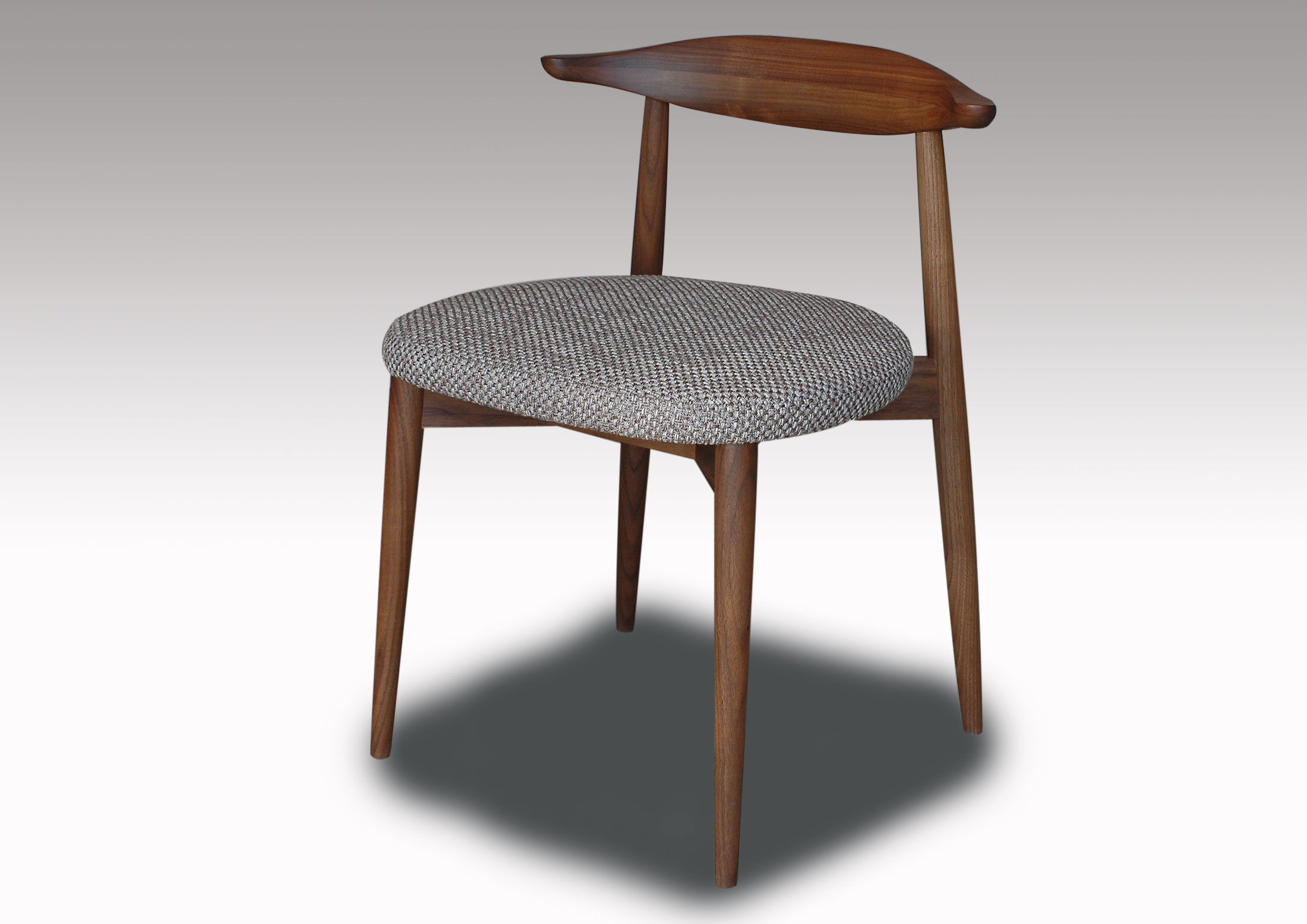 緩やかな背のカーブが身体にやさしくフィットしてとても座り心地の良いダイニングチェアーです。やや重厚でそれでいてエレガントなフォルムは、どの様なテイストの空間にも違和感なく溶け込み、誰からも愛される、そんなウォールナット無垢材のダイニンチェアです。