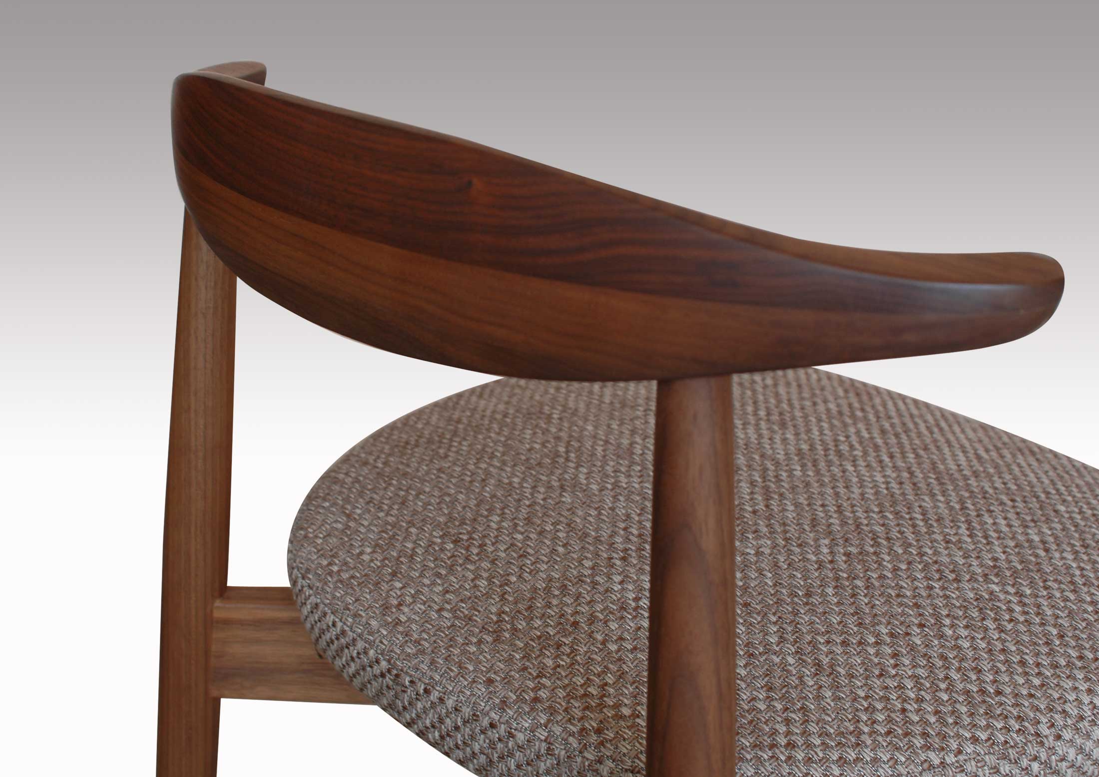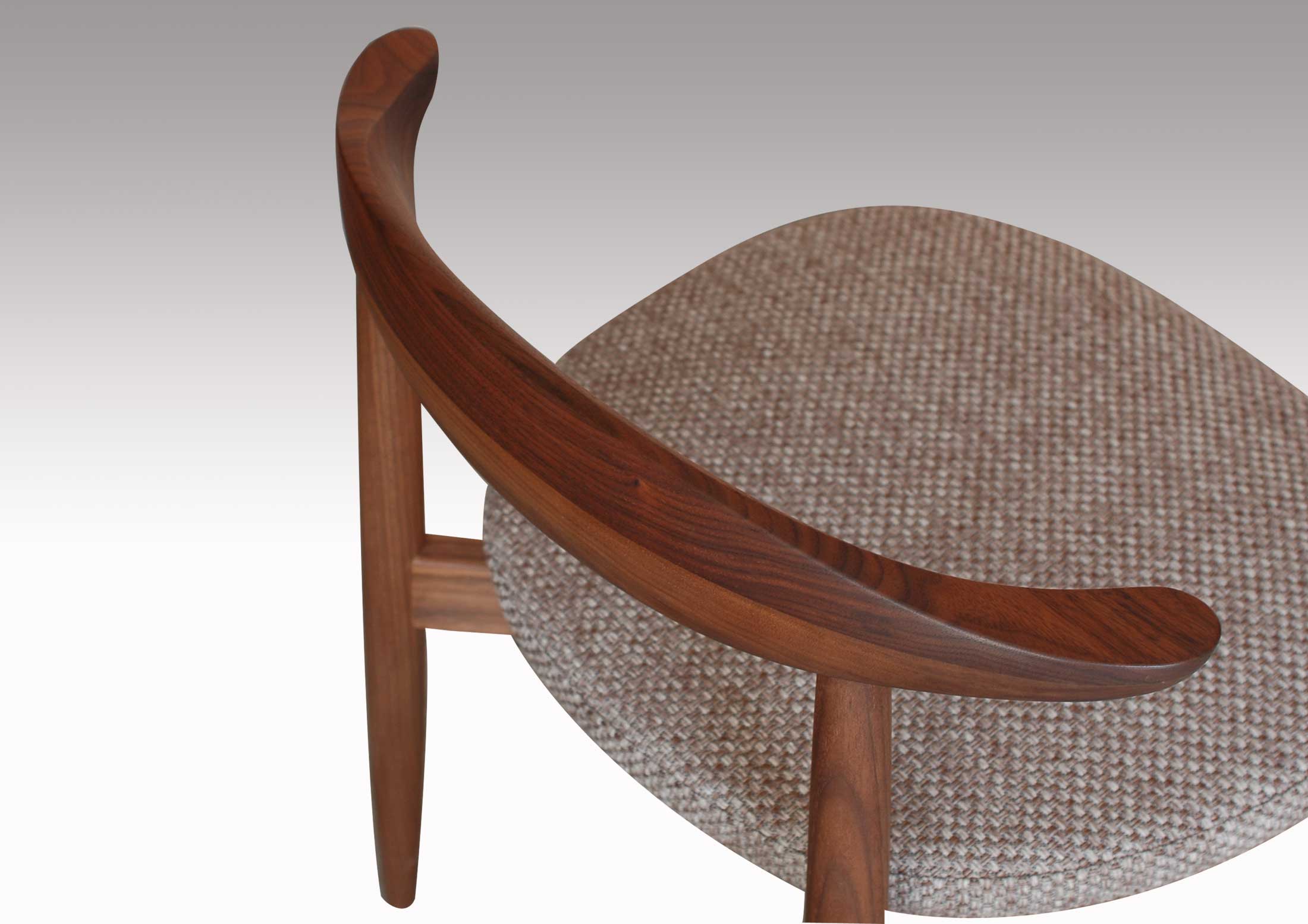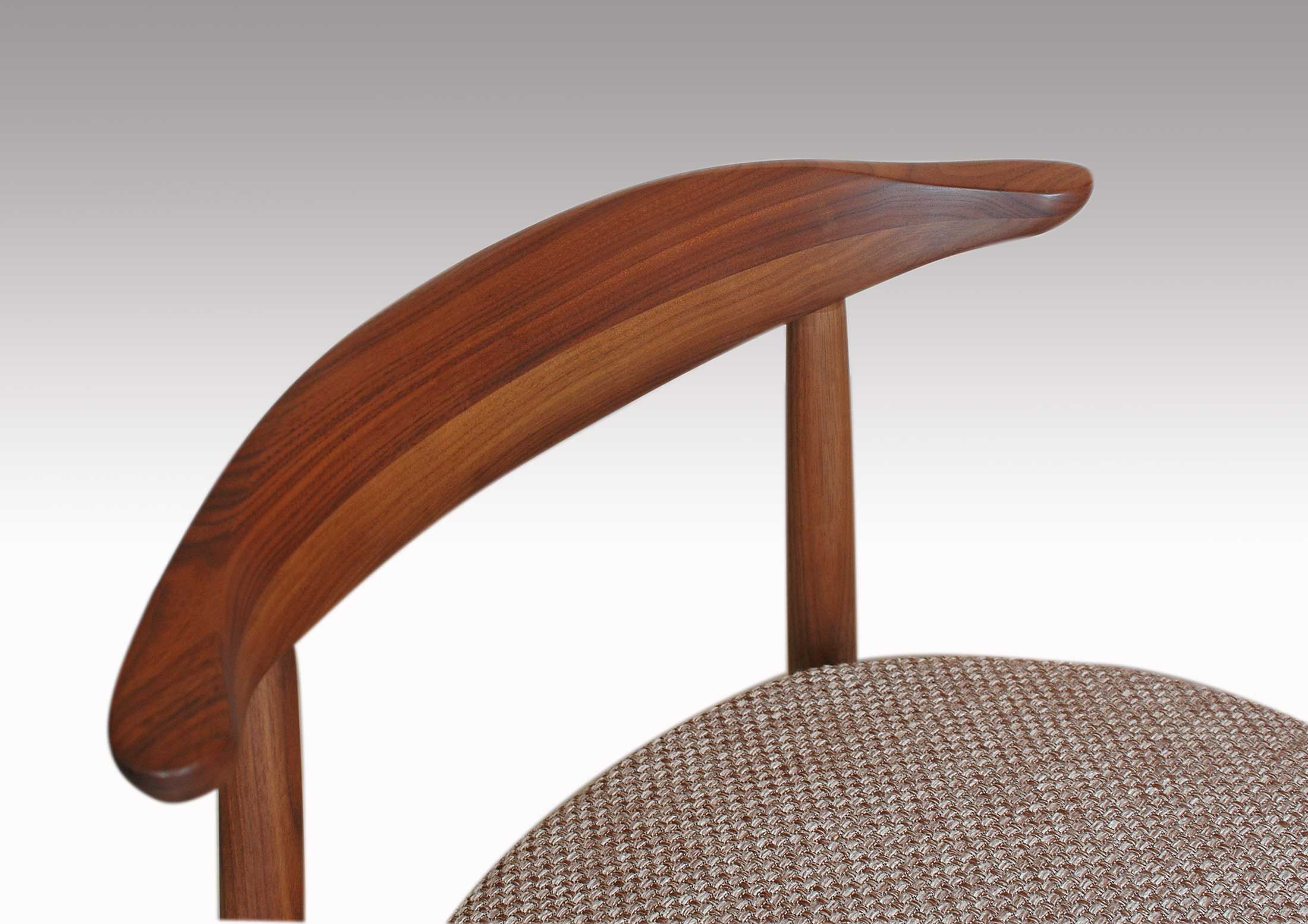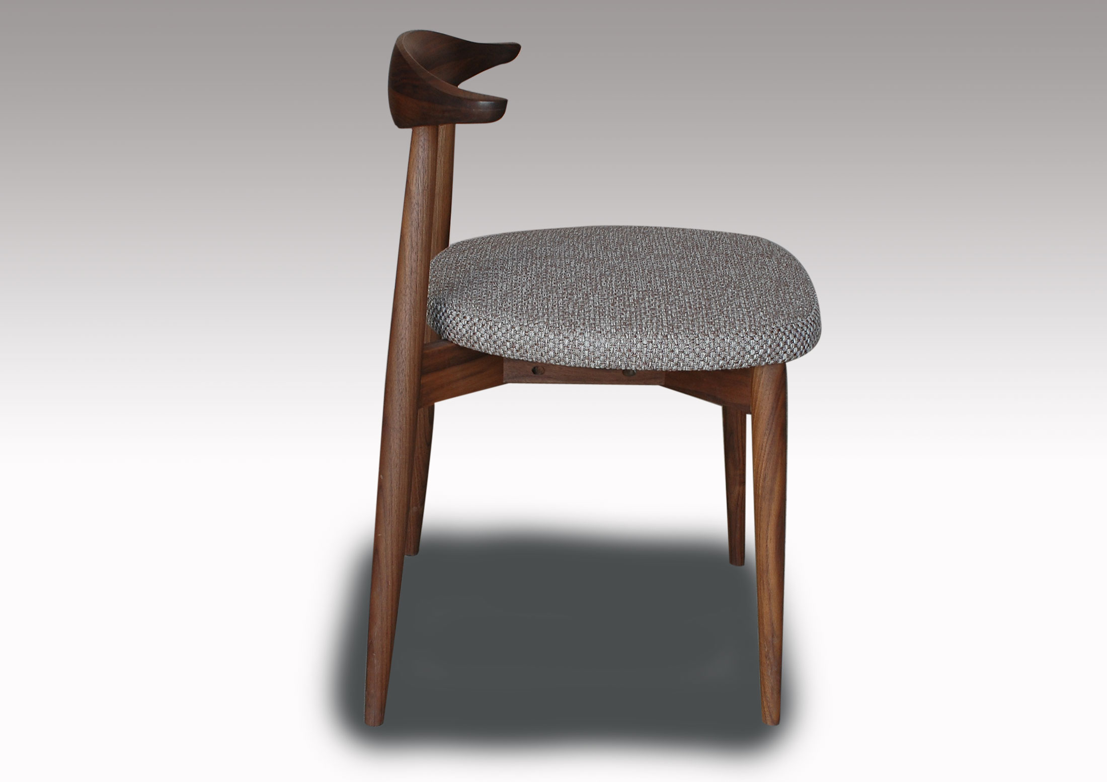 緩やかな背のカーブが身体にやさしくフィットしてとても座り心地の良いダイニングチェアーです。やや重厚でそれでいてエレガントなフォルムは、どの様なテイストの空間にも違和感なく溶け込み、誰からも愛される、そんなウォールナット無垢材のダイニンチェアです。