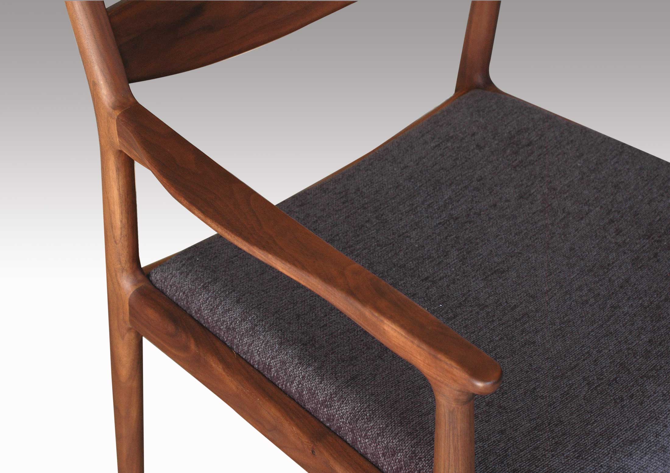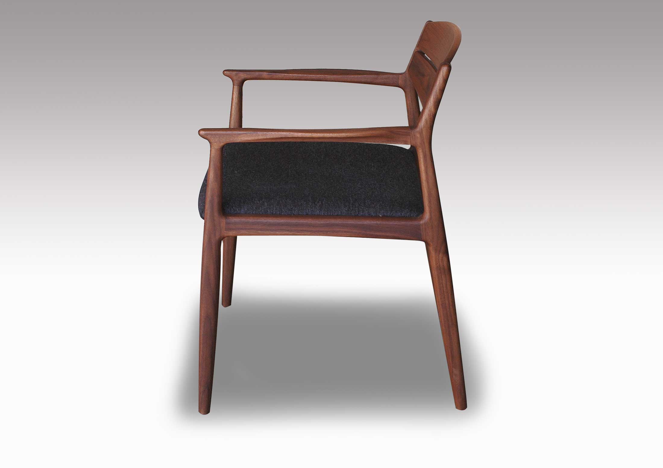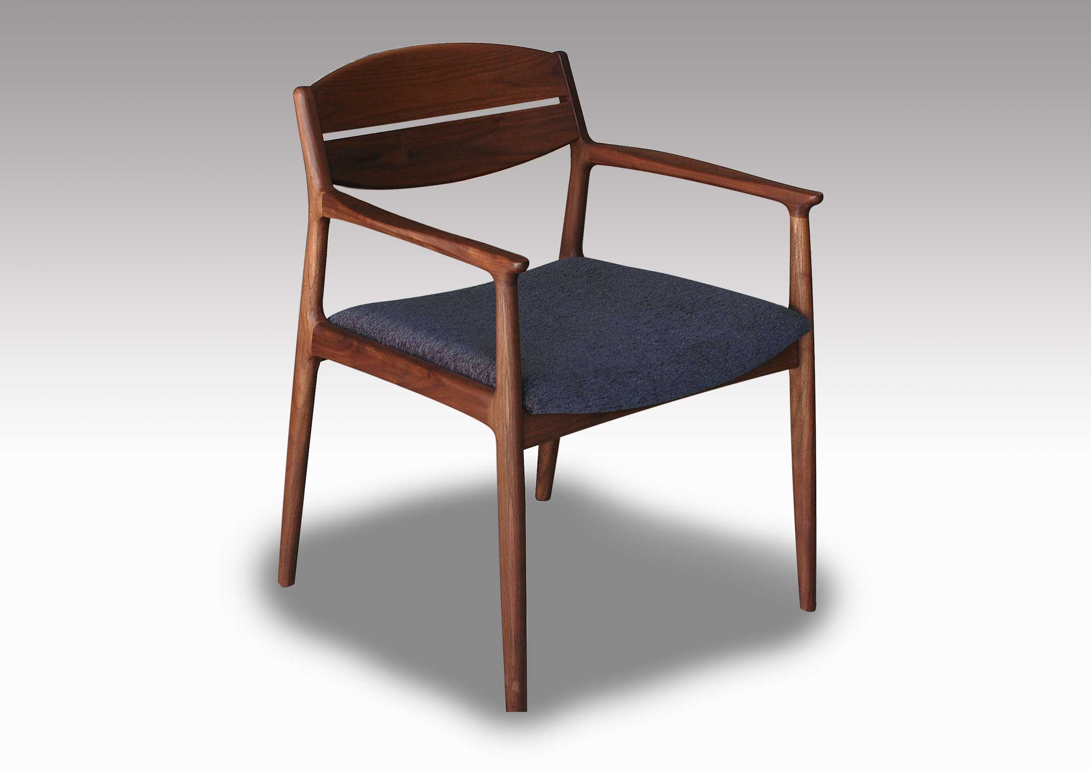 緩やかな背のカーブが身体にやさしくフィットしてとても座り心地の良いダイニングチェアーです。やや重厚でそれでいてエレガントなフォルムは、どの様なテイストの空間にも違和感なく溶け込み、誰からも愛される、そんなウォールナット無垢材のダイニングチェアです。