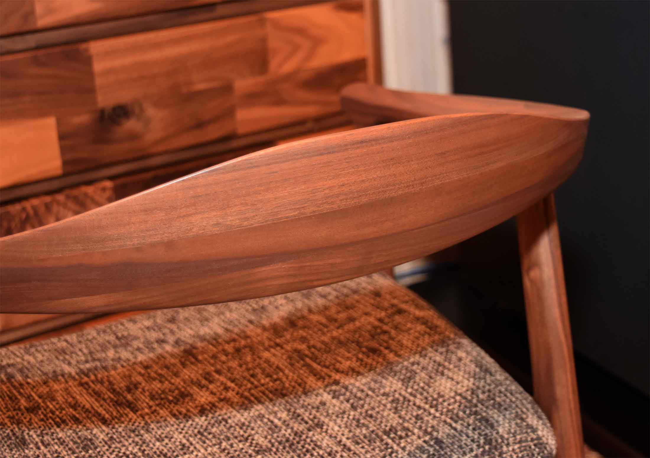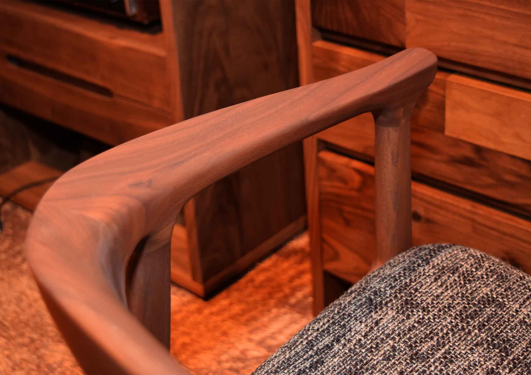 無垢材を馬蹄形に削り出して、製作したアームチェアです。