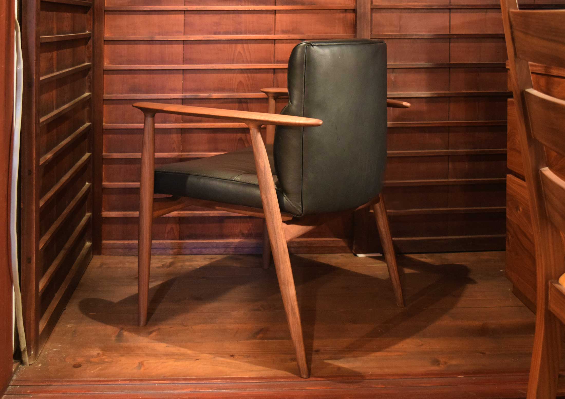 ウォールナットチェアー ウォールナット肘付き椅子 ハイバック板座椅子