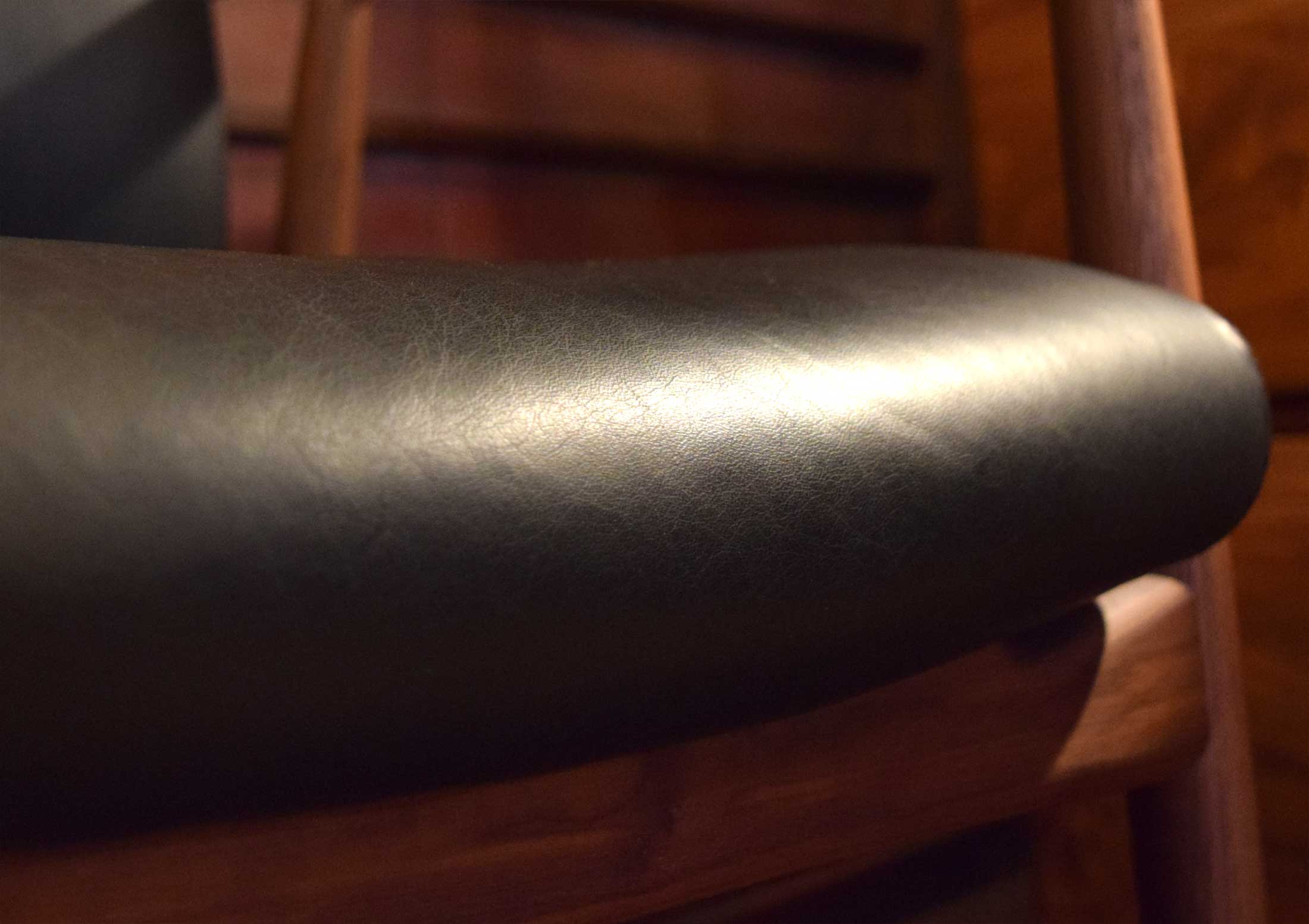 座面は、柔らかなクッション性と食事のシーンでも安定して使えるよう素材に拘りました。最大の特徴は、背もたれにあります。背もたれに背中を預けると、適度に背もたれが倒れ食後のくつろぎのひと時を、十分に満喫して頂ける事ができます。