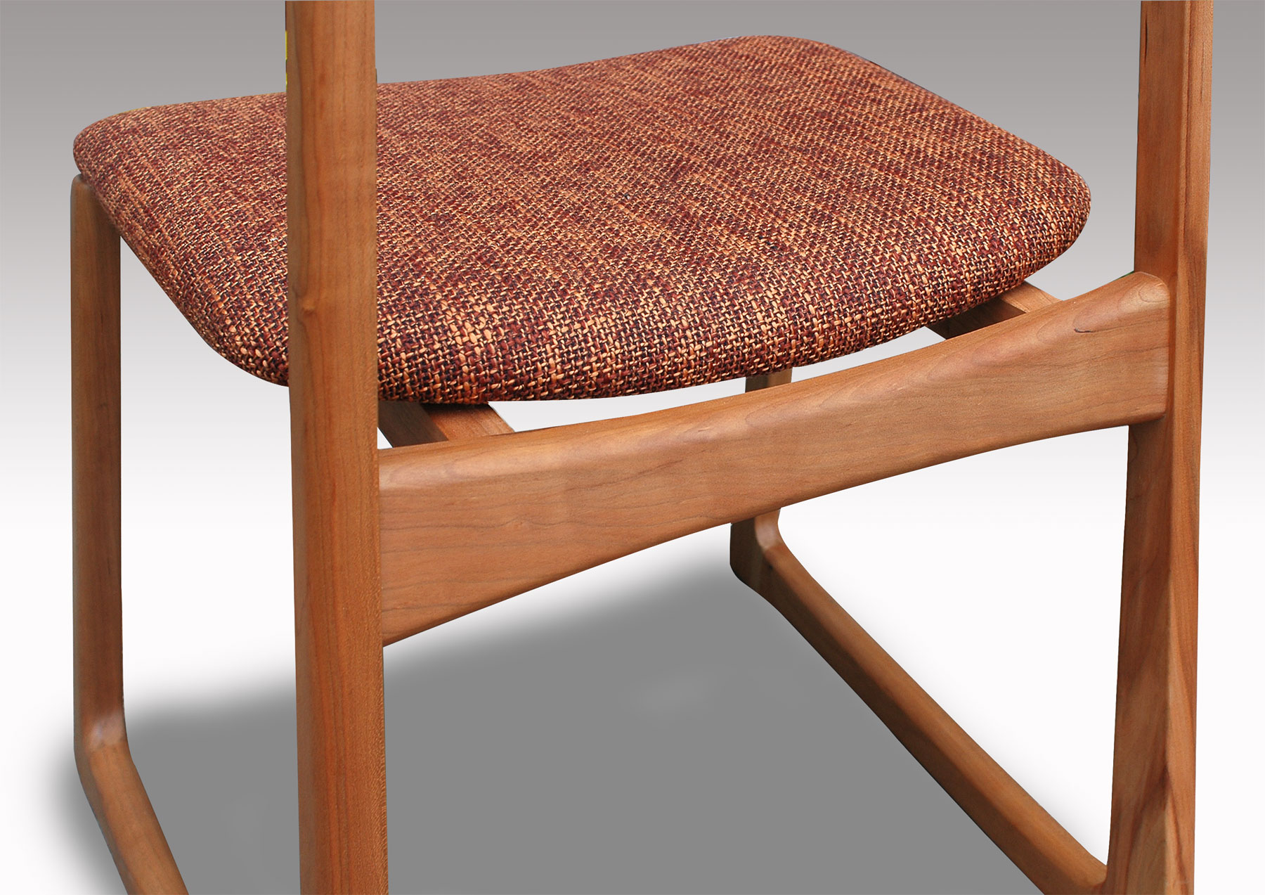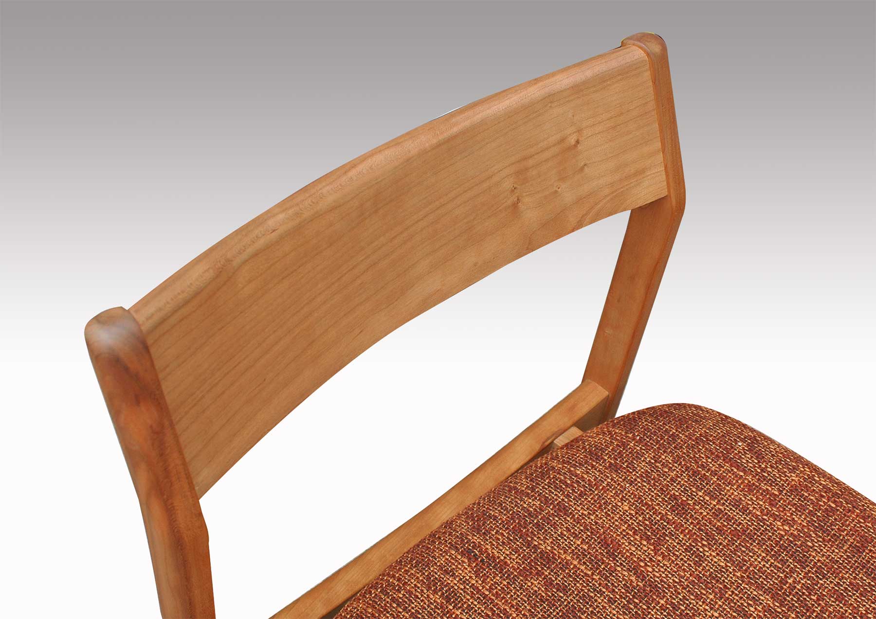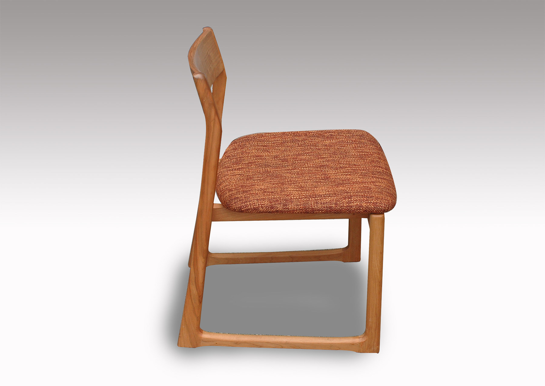 軽快なイメージのチェアーです。無垢材を柔らかなカーブに削り出したフォルムは細身ですが、木の味わいがたっぷりです。背板は曲げ木の無垢板で、安楽な座り心地、ゆったりとくつろげます。どんなテイストの空間にも違和感なく溶け込み、誰からも愛される、そんなブラックチェリー無垢材のダイニングチェアです。