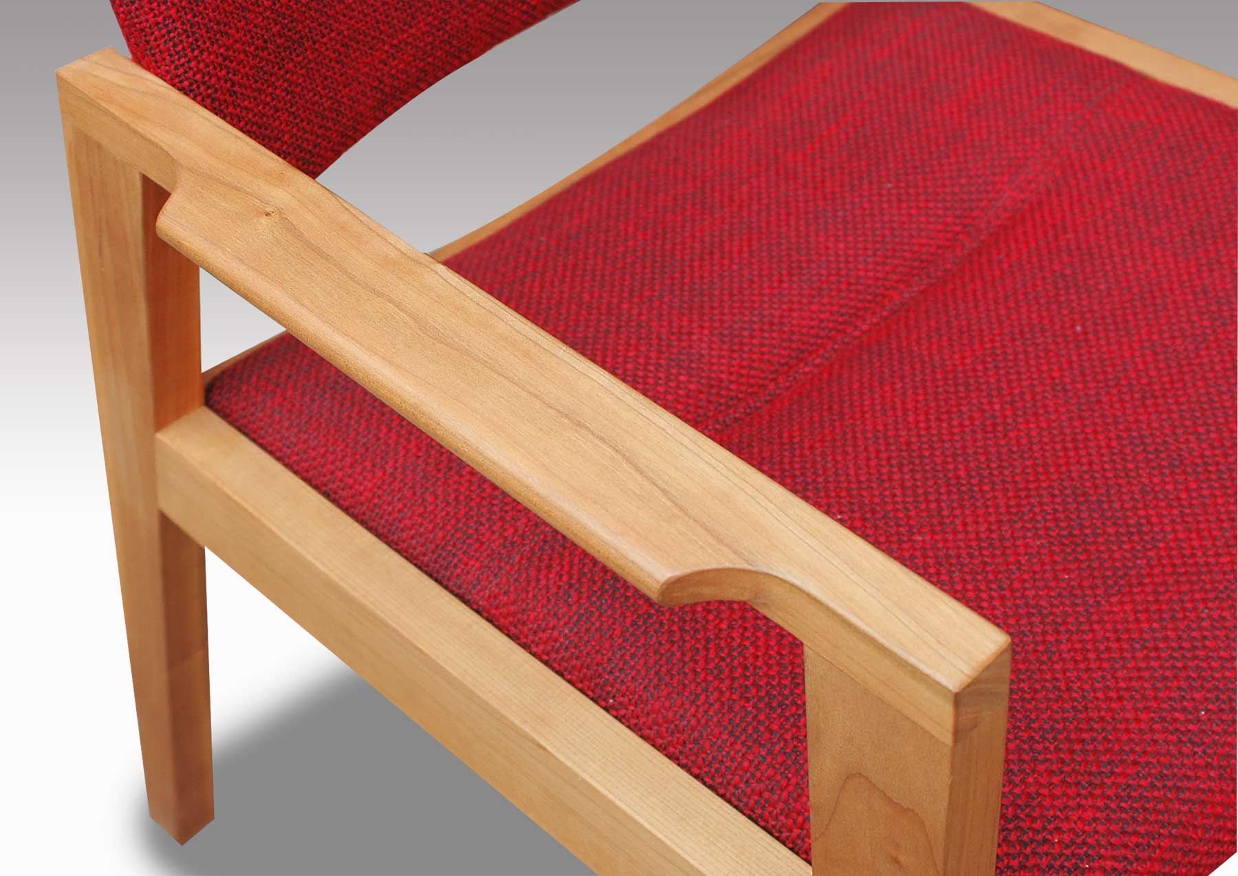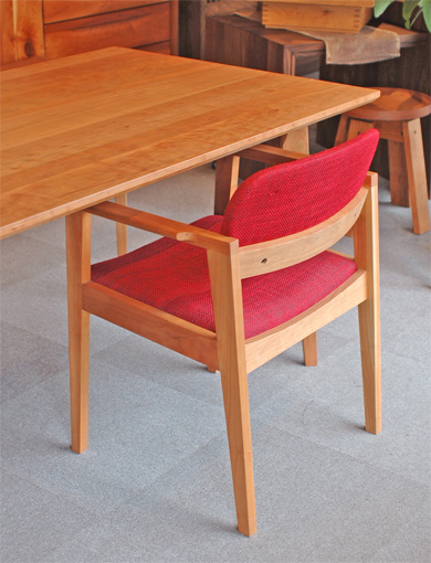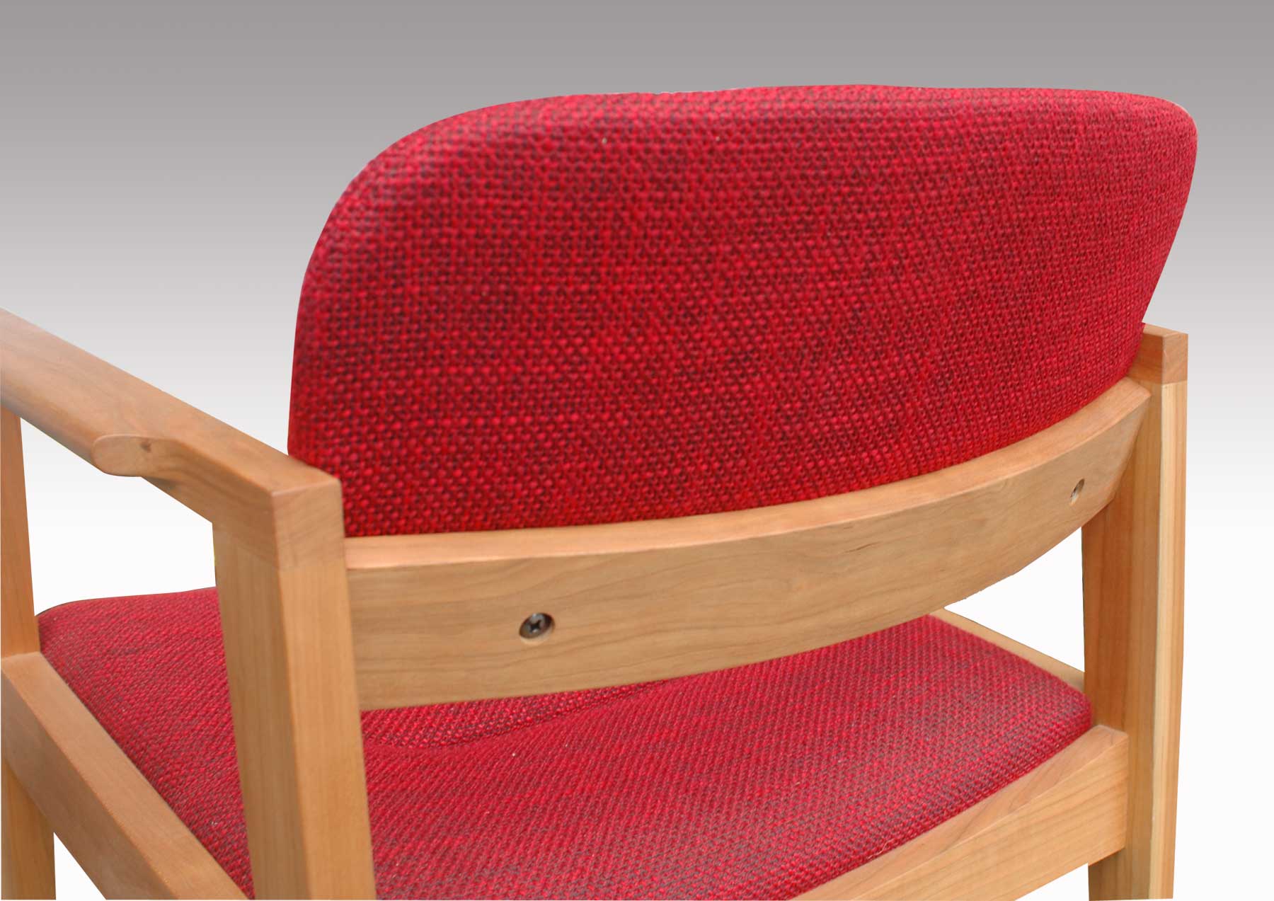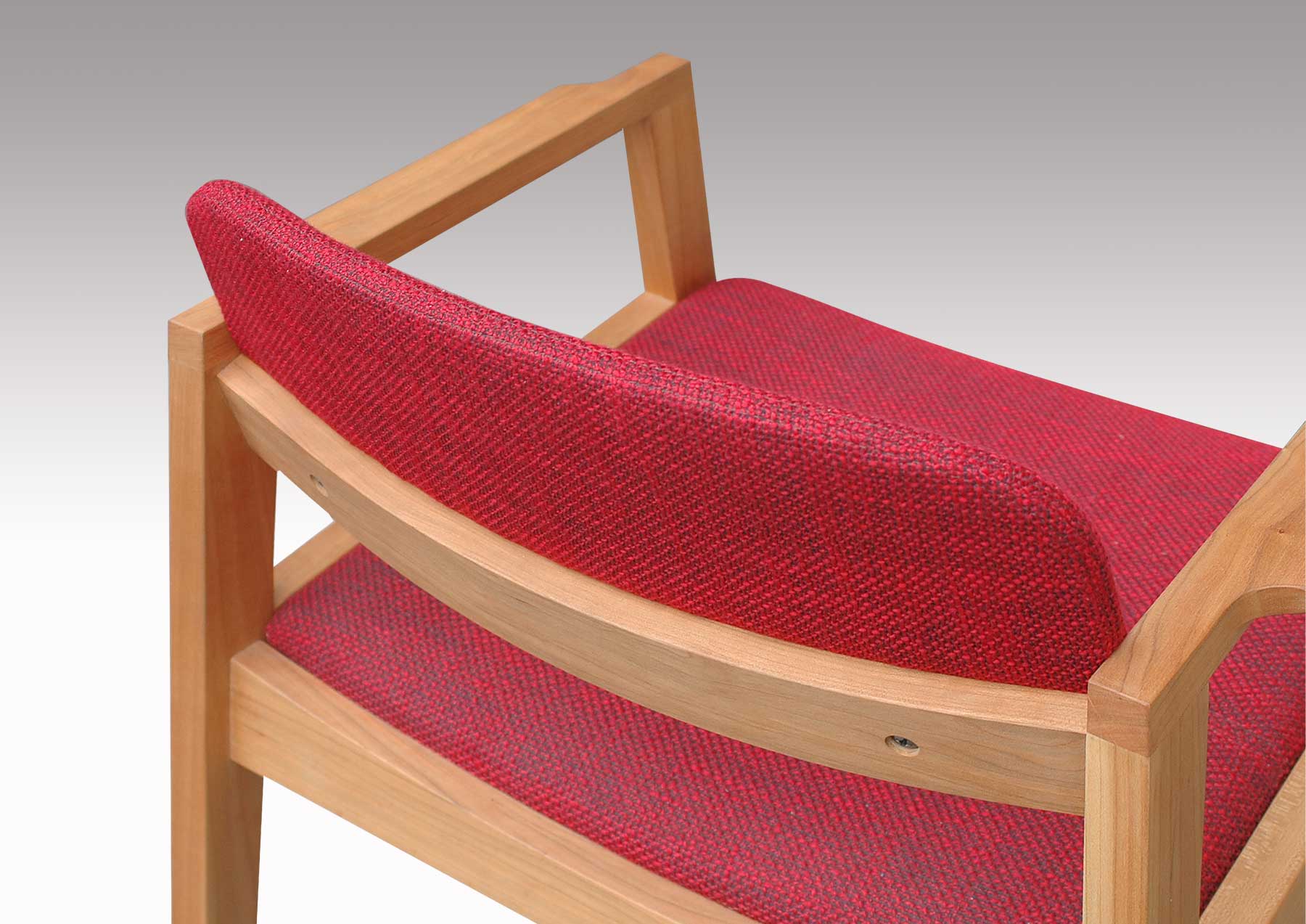 とつひとつ手作業で丸みを持たせた木部と、広くて座りやすい座面がシンプルでやさしい心和む空間を演出できます。
