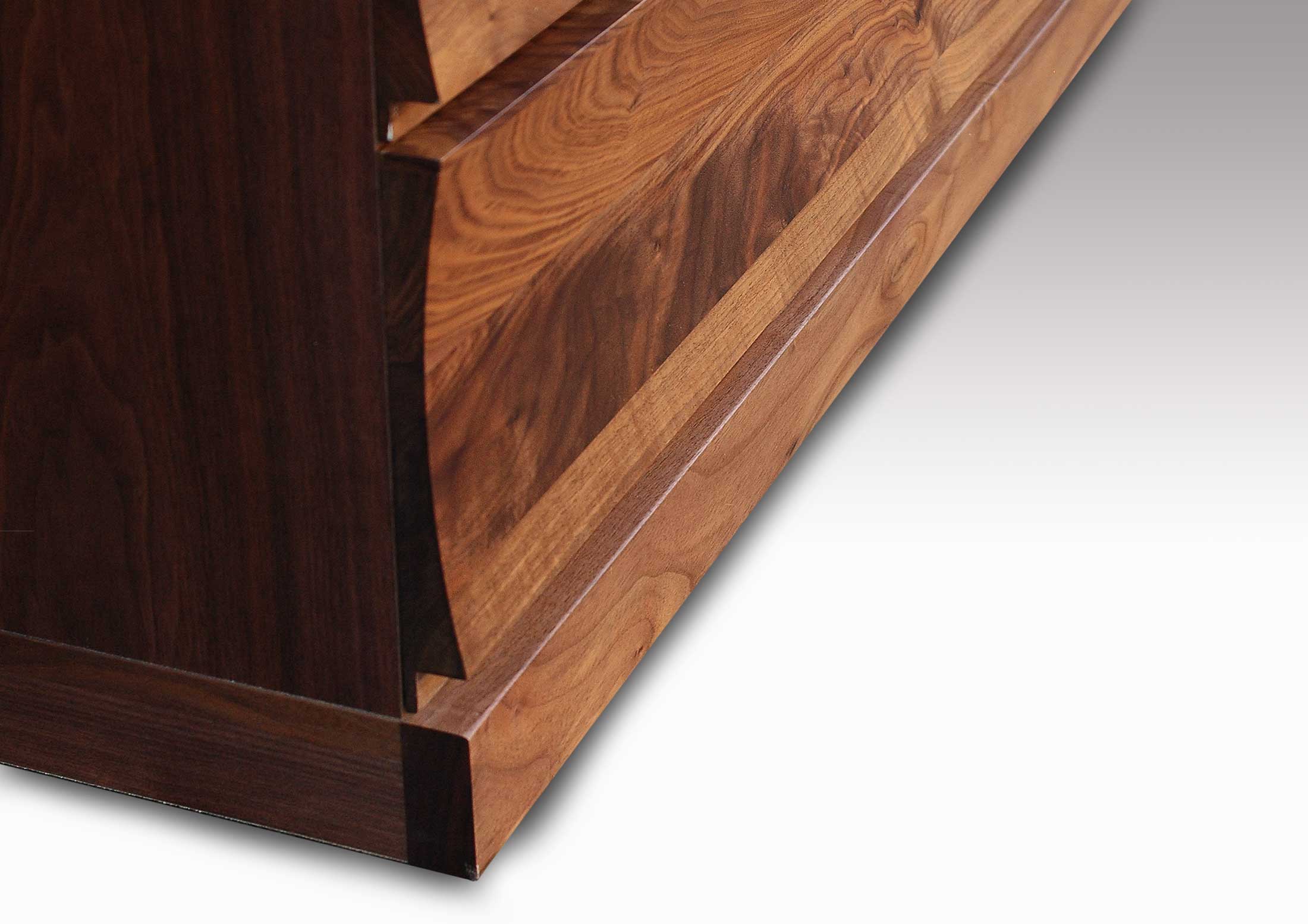 2. 前面はウォールナット材の無垢板で、使いこむほどに風合いが増します。