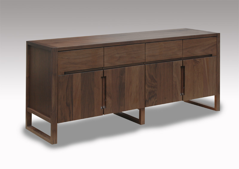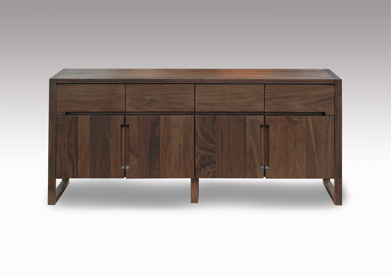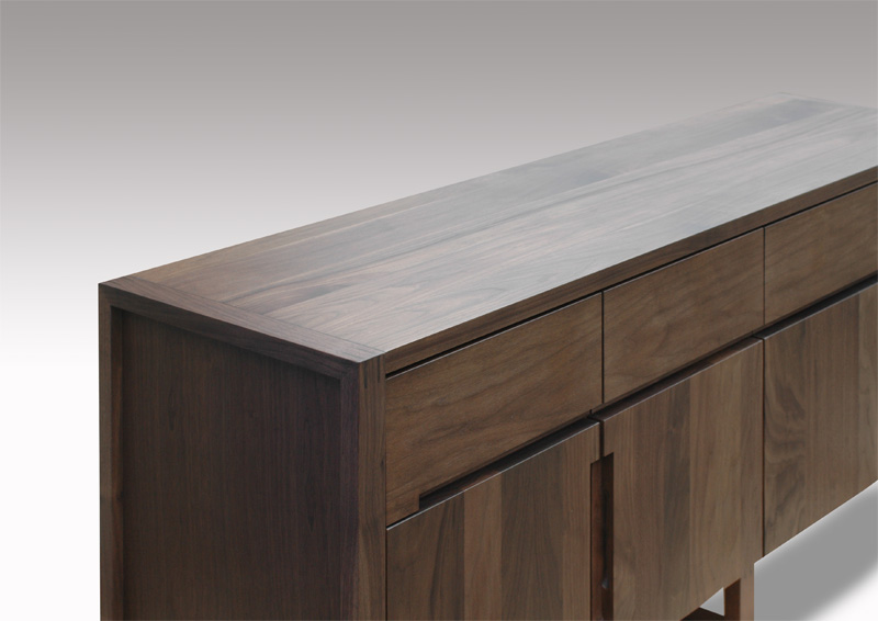 1. 天板・前面等の主要な部材は、ウォールナット材の無垢板で材をおしみなく使用しています。