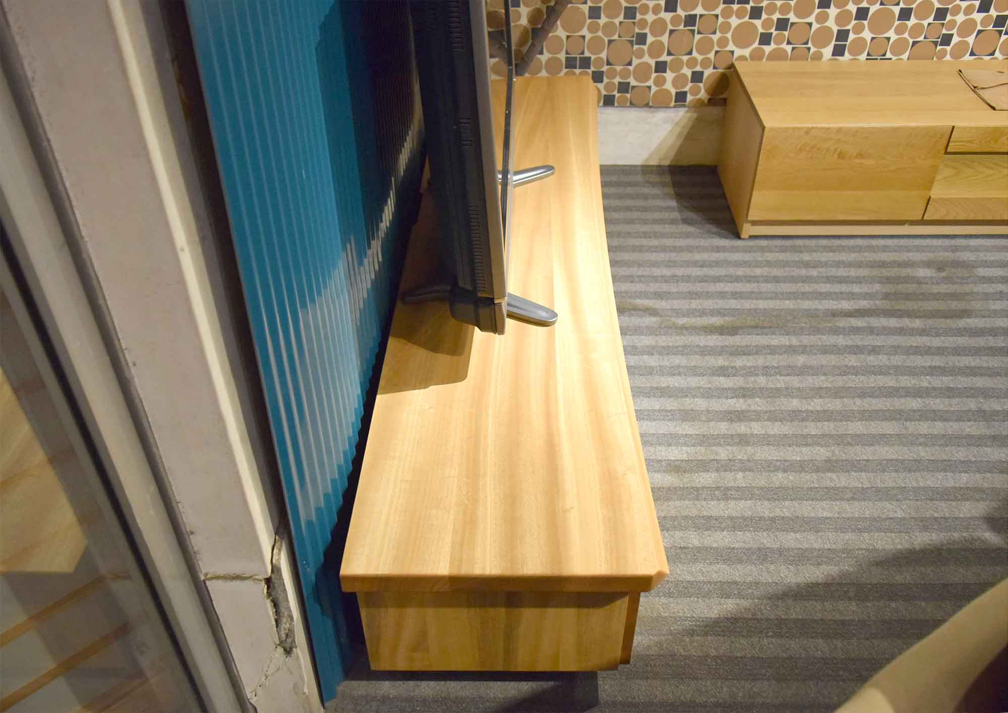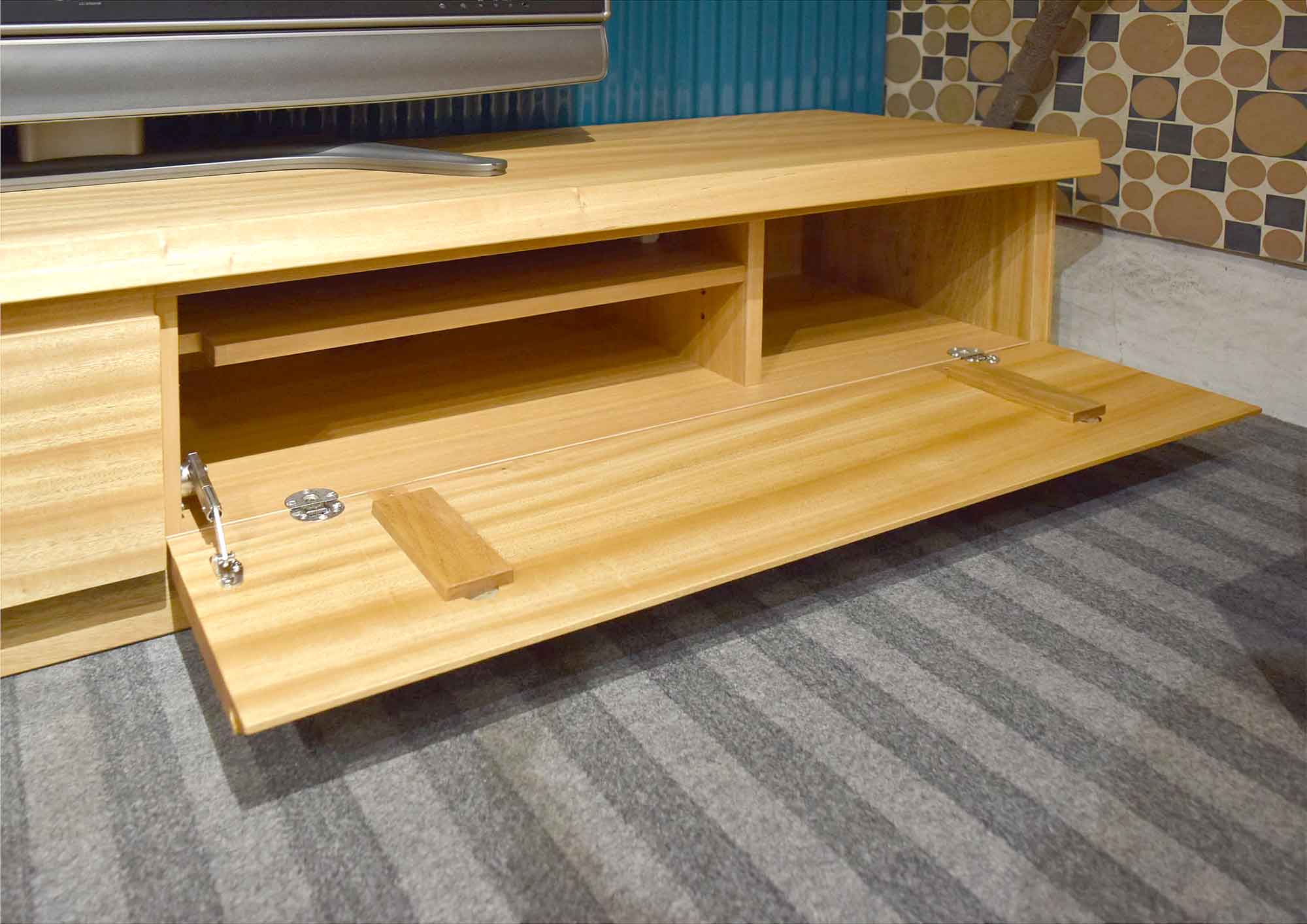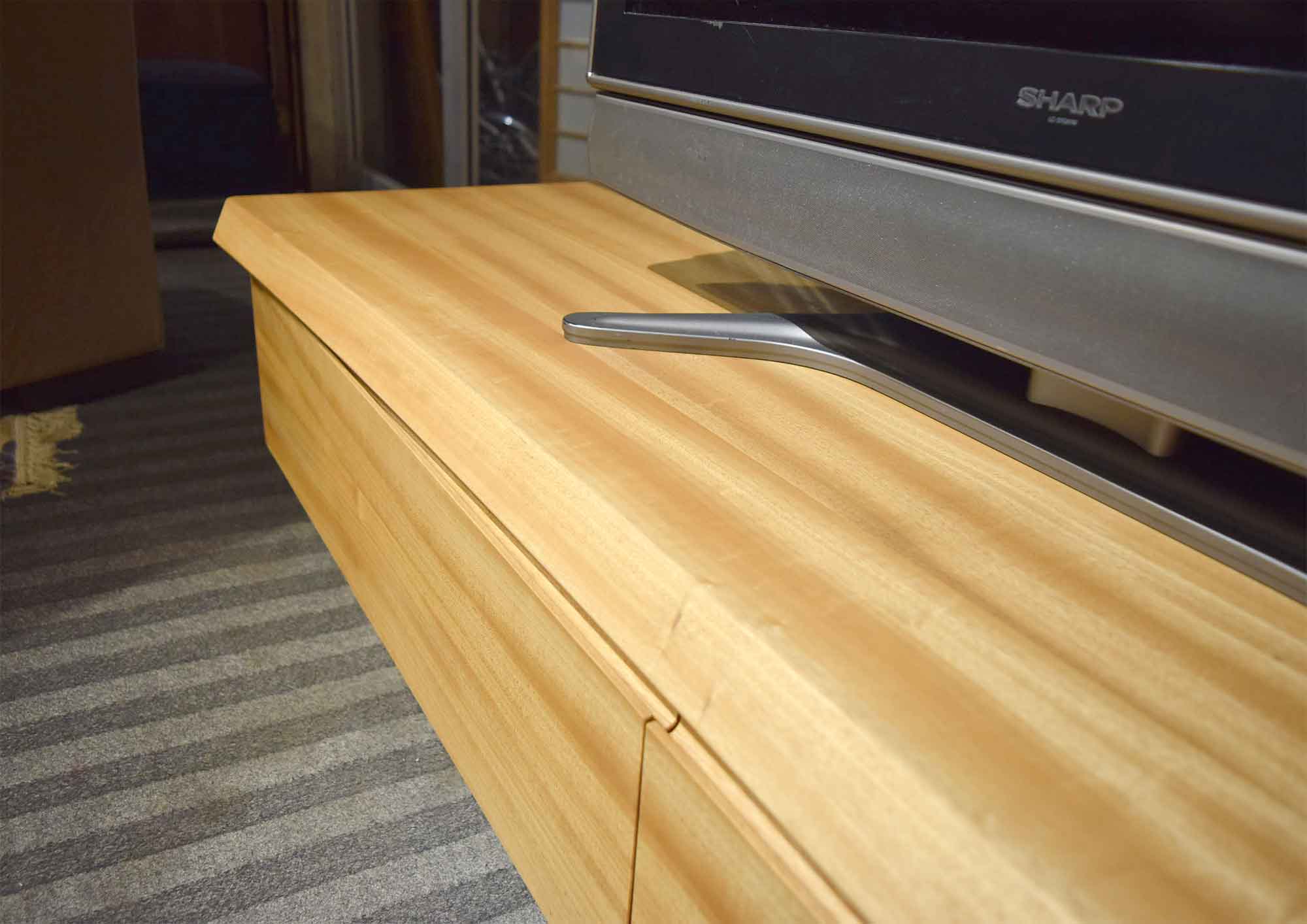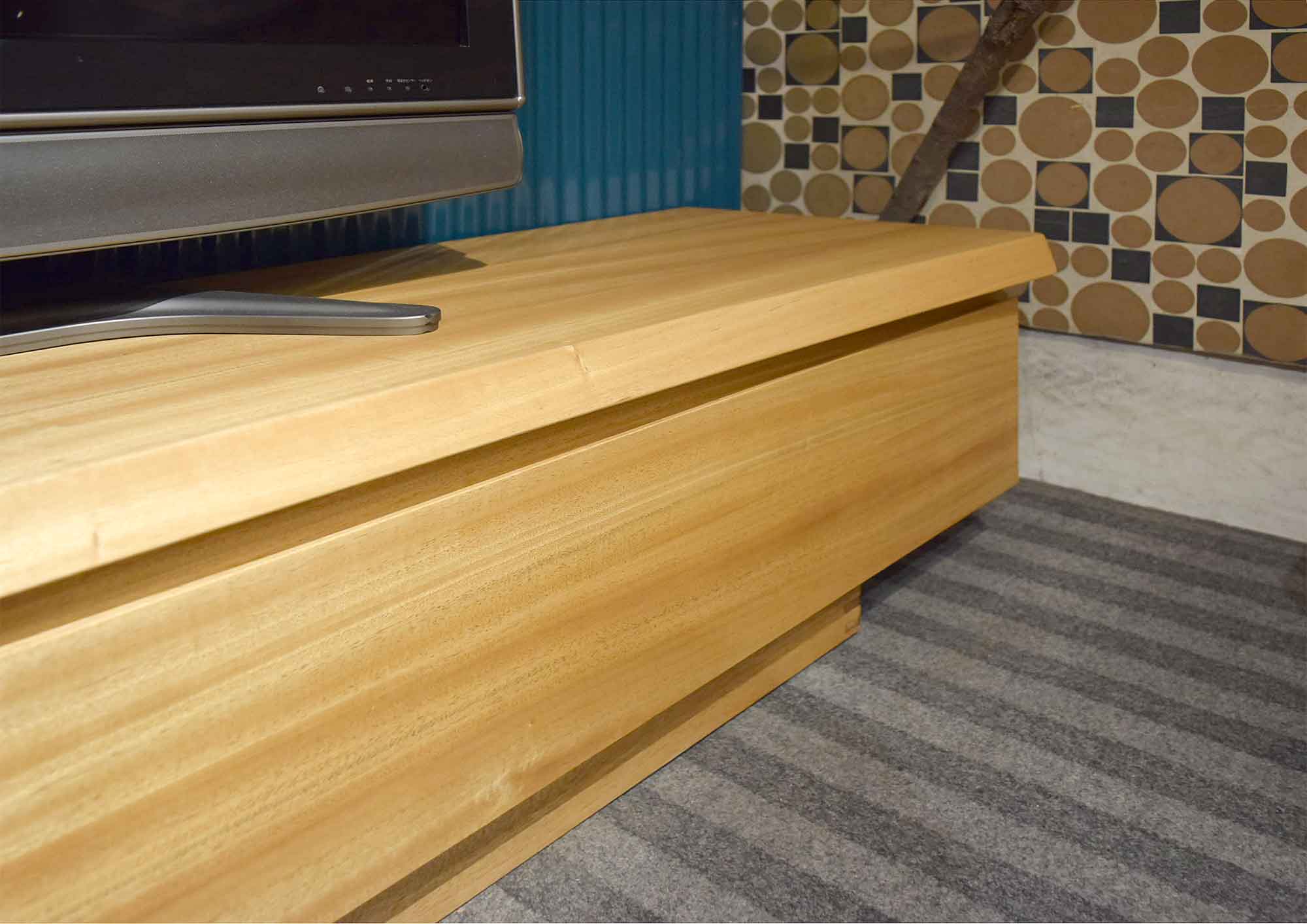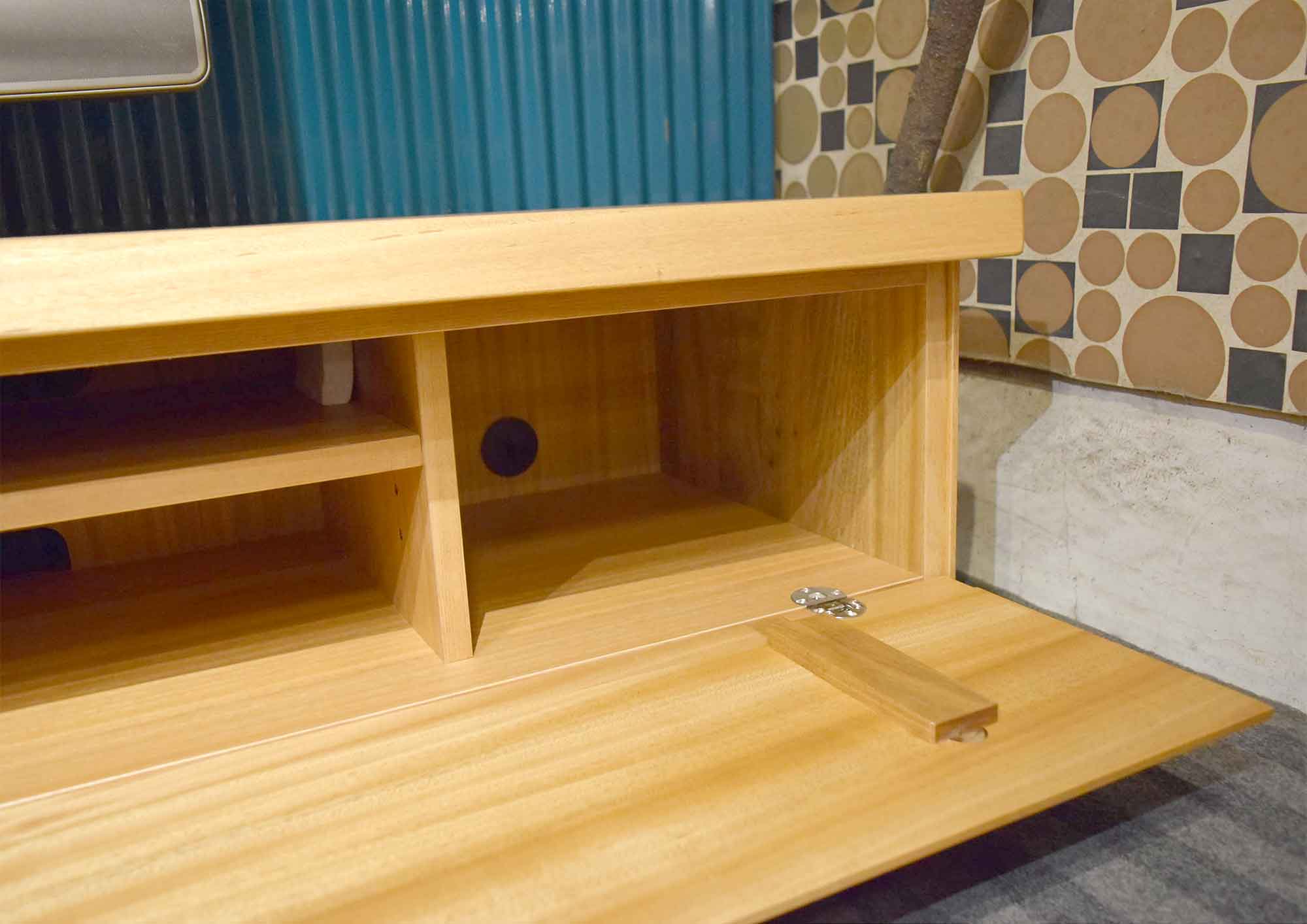自然なデザインが特徴的な人気のTVボードです。天板・前面・側面は国産楠材の無垢材を使用していますので木の味わいがたっぷりです。どんなテイストの空間にも違和感なく溶け込み、誰からも愛される、無垢材のTVボードです。