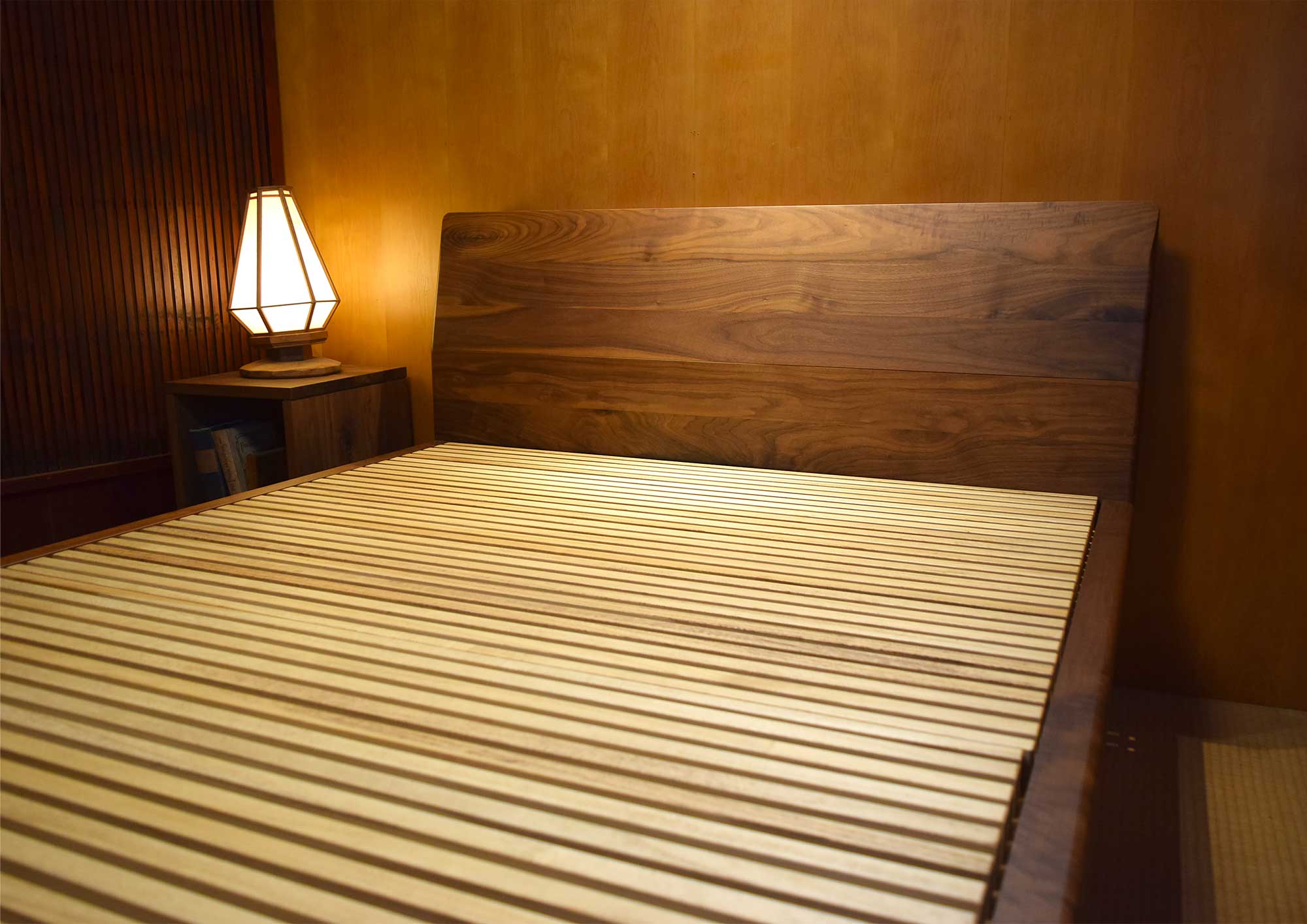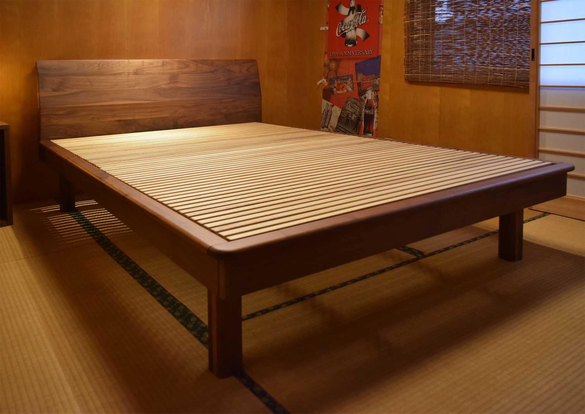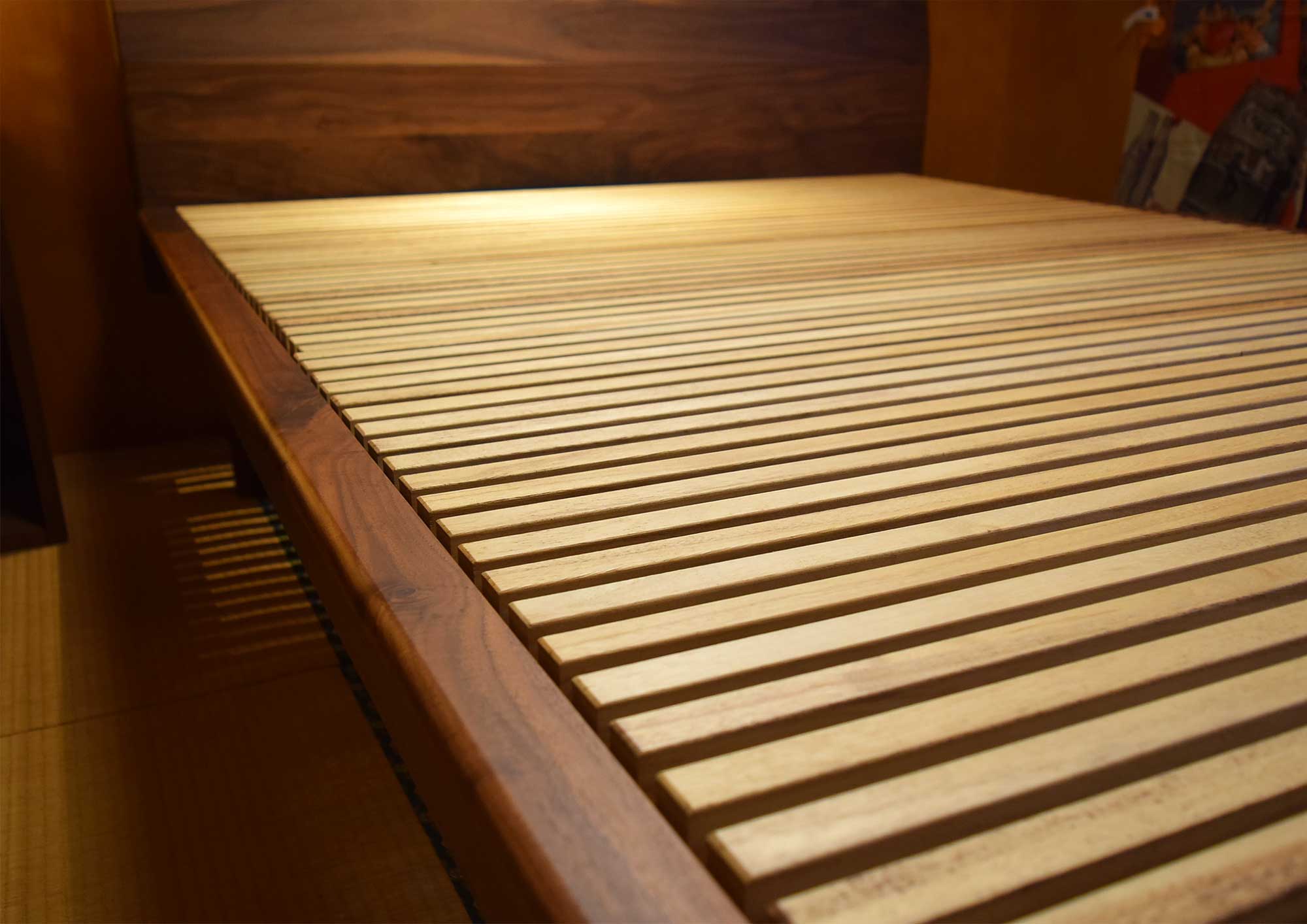 ウォールナット無垢材すのこベッド 布団用ダブル