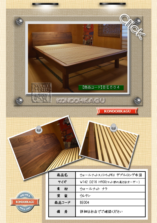 TOP無垢ベッド一覧ウォールナットすのこベッドKU ダブルロング布団