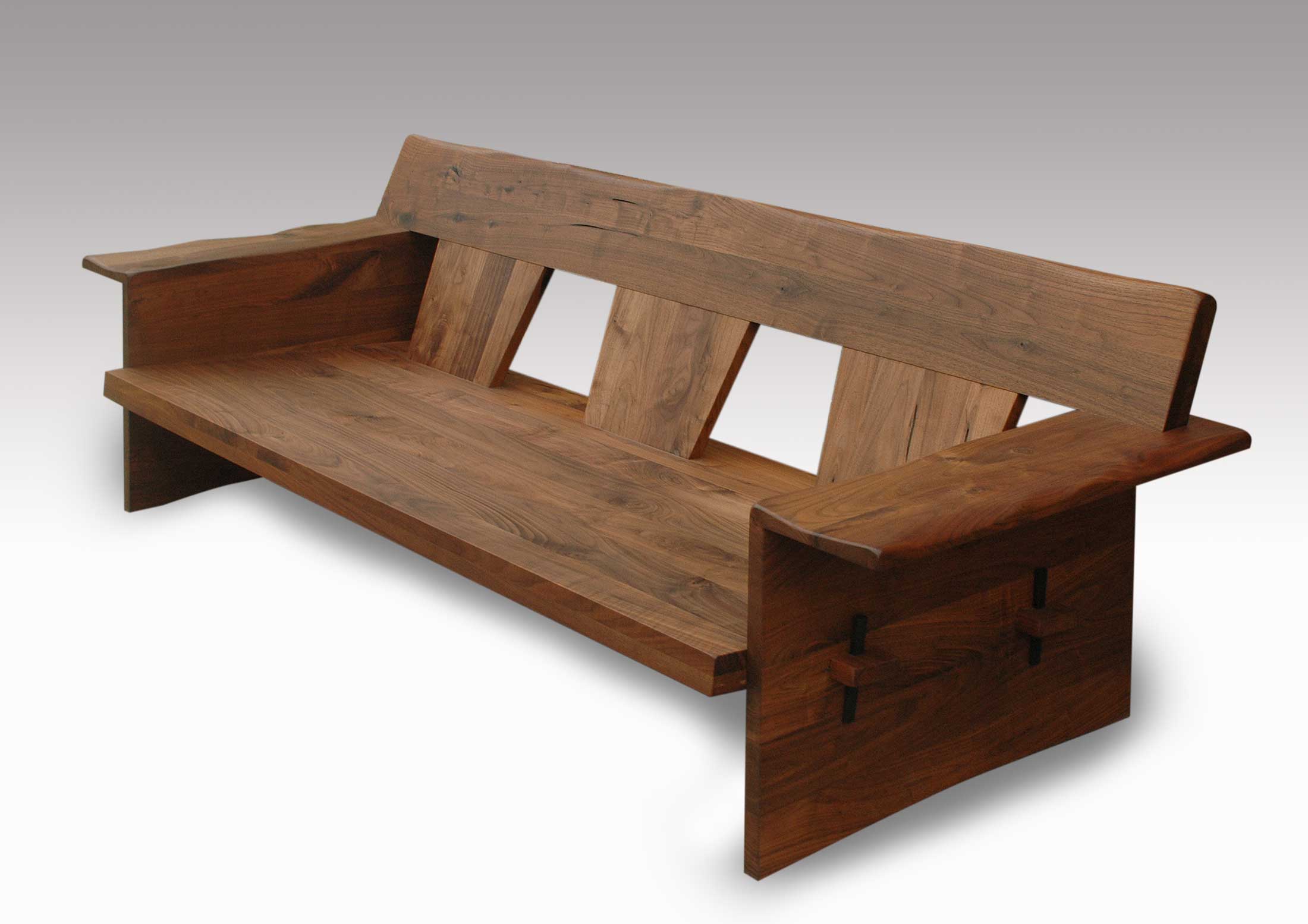 ウォールナット無垢材板座のソファー オール無垢材でマットが外せます