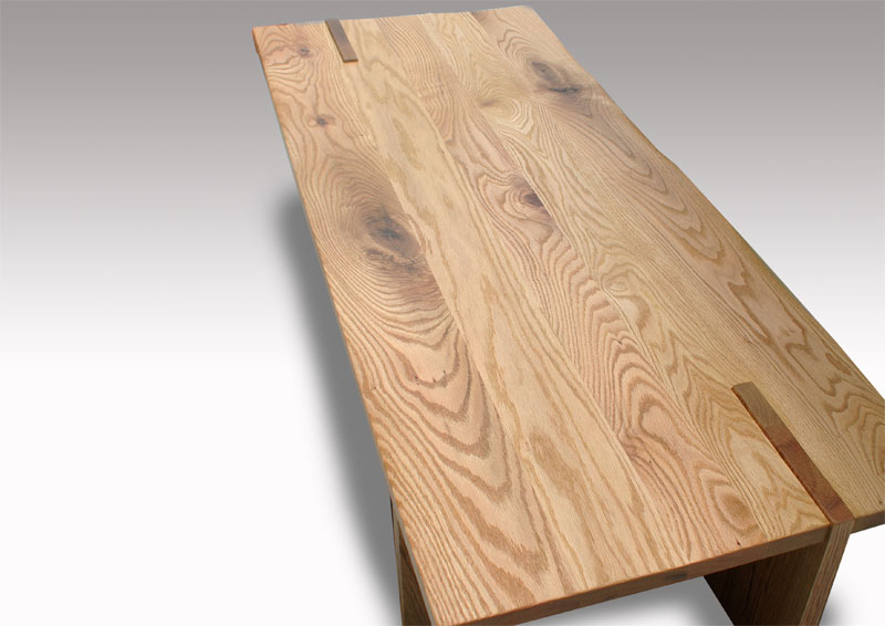 TOP無垢手づくり大川家具 くさびホワイトオーク材ソファーテーブル大川家具