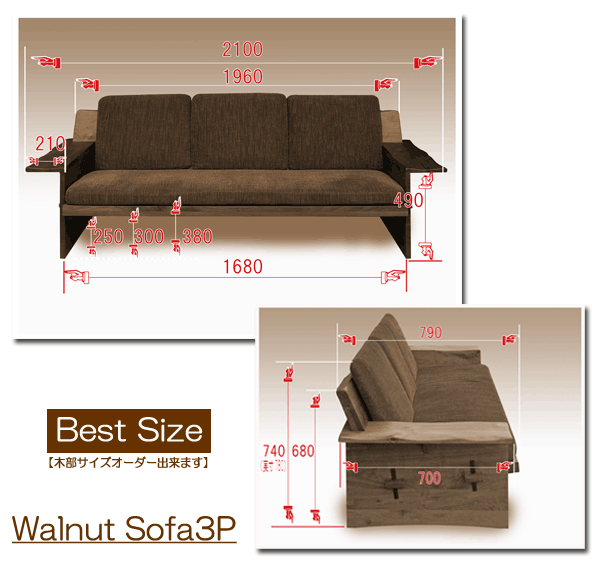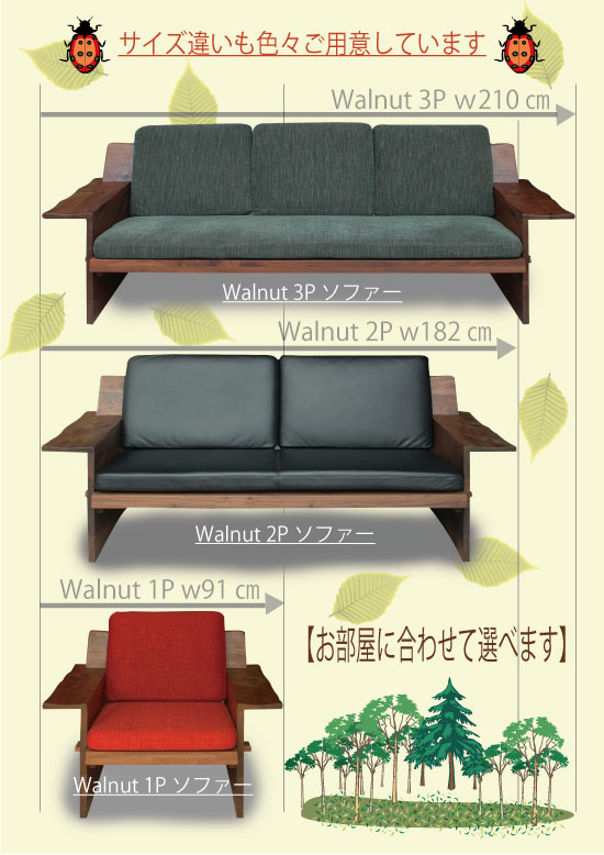 ウォールナット無垢材ソファー ウォールナット材ソファー
