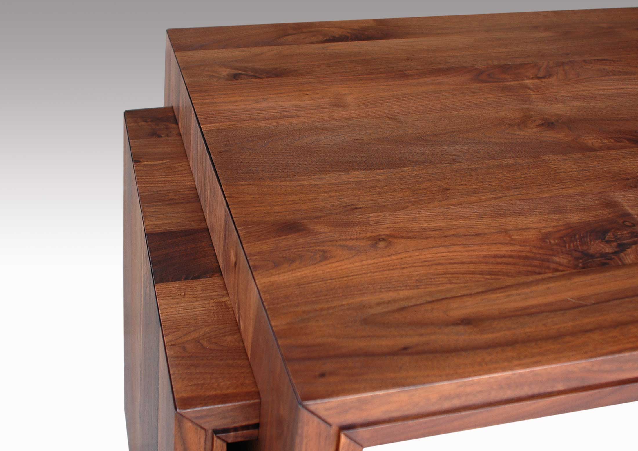 今、大人気の北米産の素材、ウォールナット・ホワイトオーク・ブラックチェリー材をおしみなくふんだんに使用しておりますので、持った時の重量はズッシリ重たく、風格が全然違います。色々な家具を配達しますが、頑丈な家具・作りにこだわつた家具・厳選された素材を使った家具は、ズッシリと重たいものです。こちらの製品は、妥協をせずに素材にこだわりぬいて作った作者の心意気が、その重さにズッシリと表れていると思います。