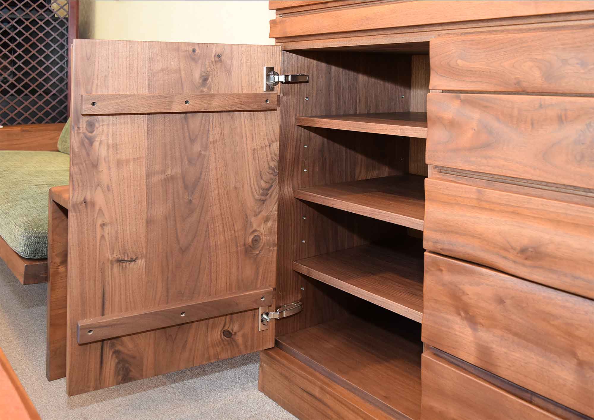 1. ウォールナット材の収納重視のダイニングボードです。