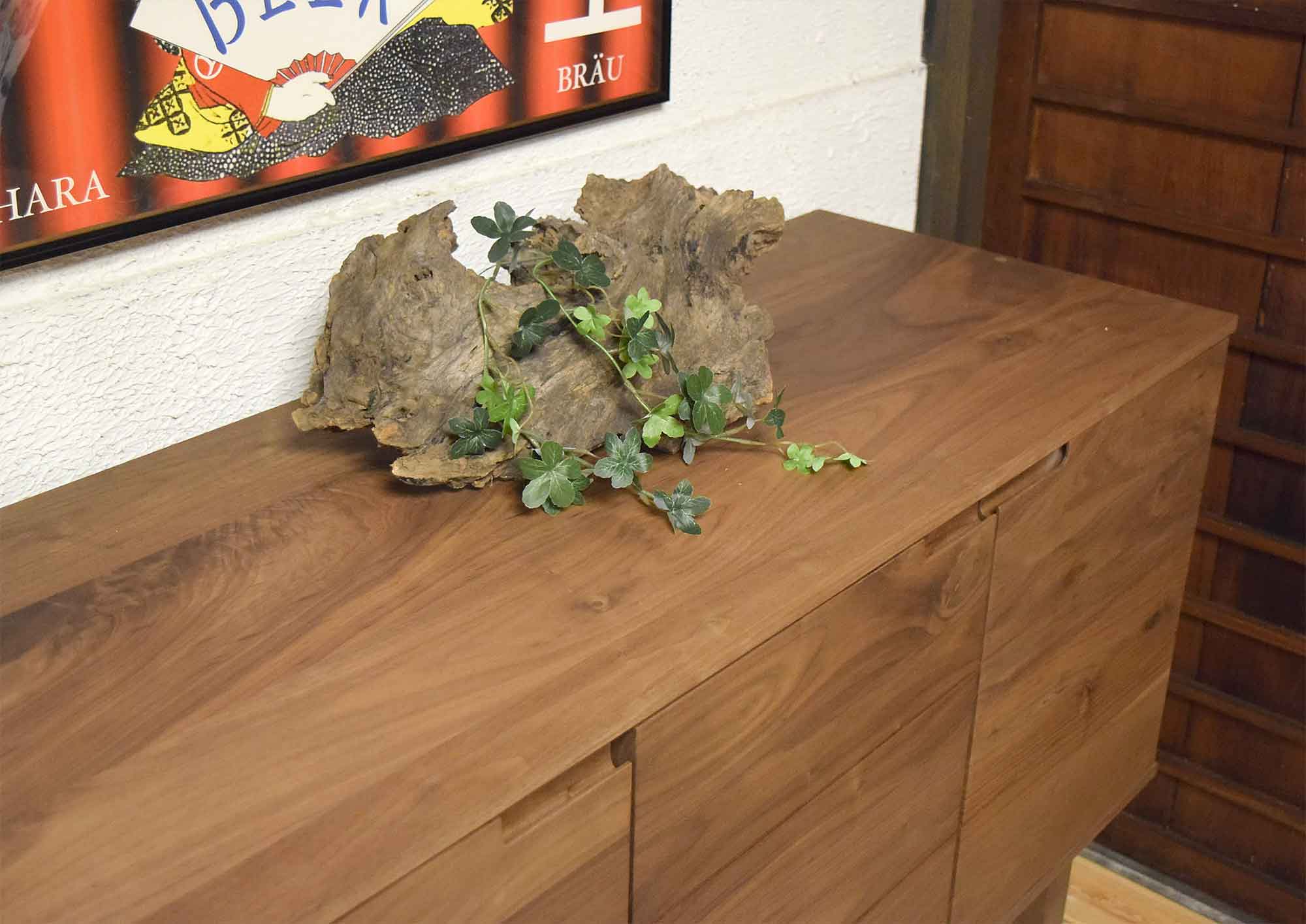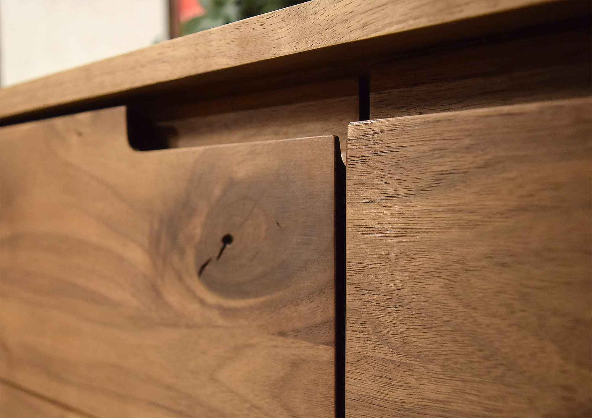 1. ウォールナット材の天板・前面・側面(が無垢で使い込むほどに味わいが増してきます。