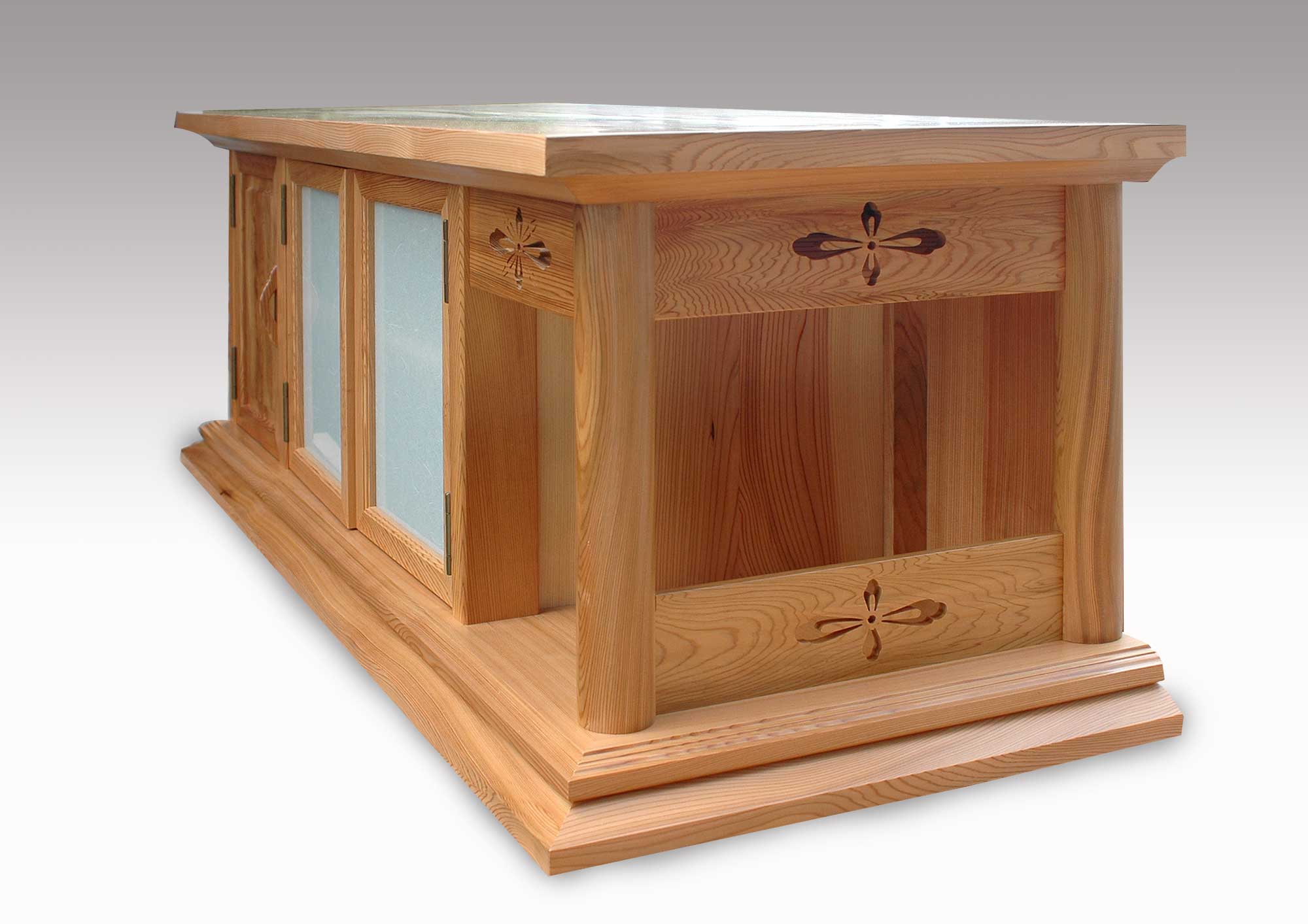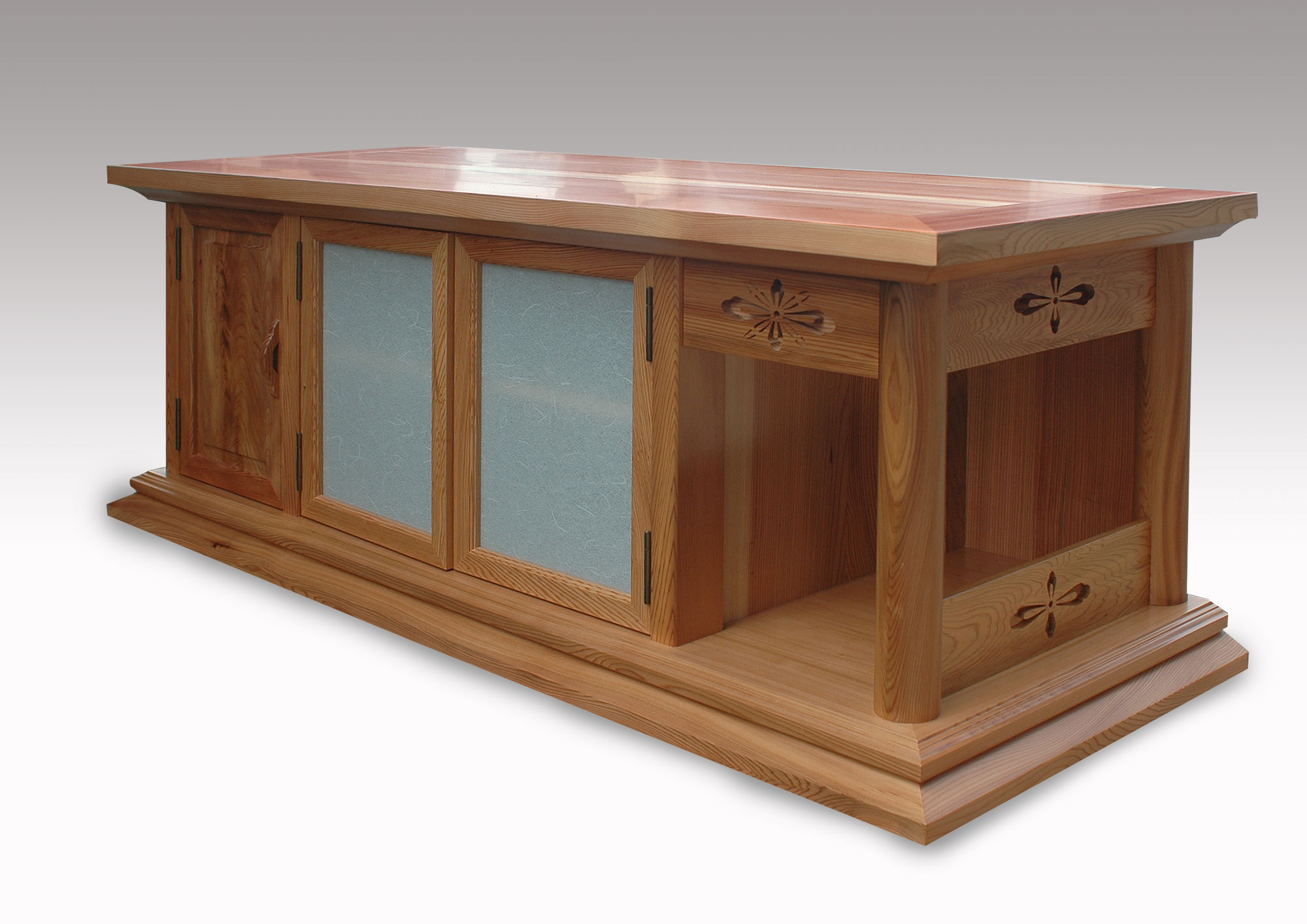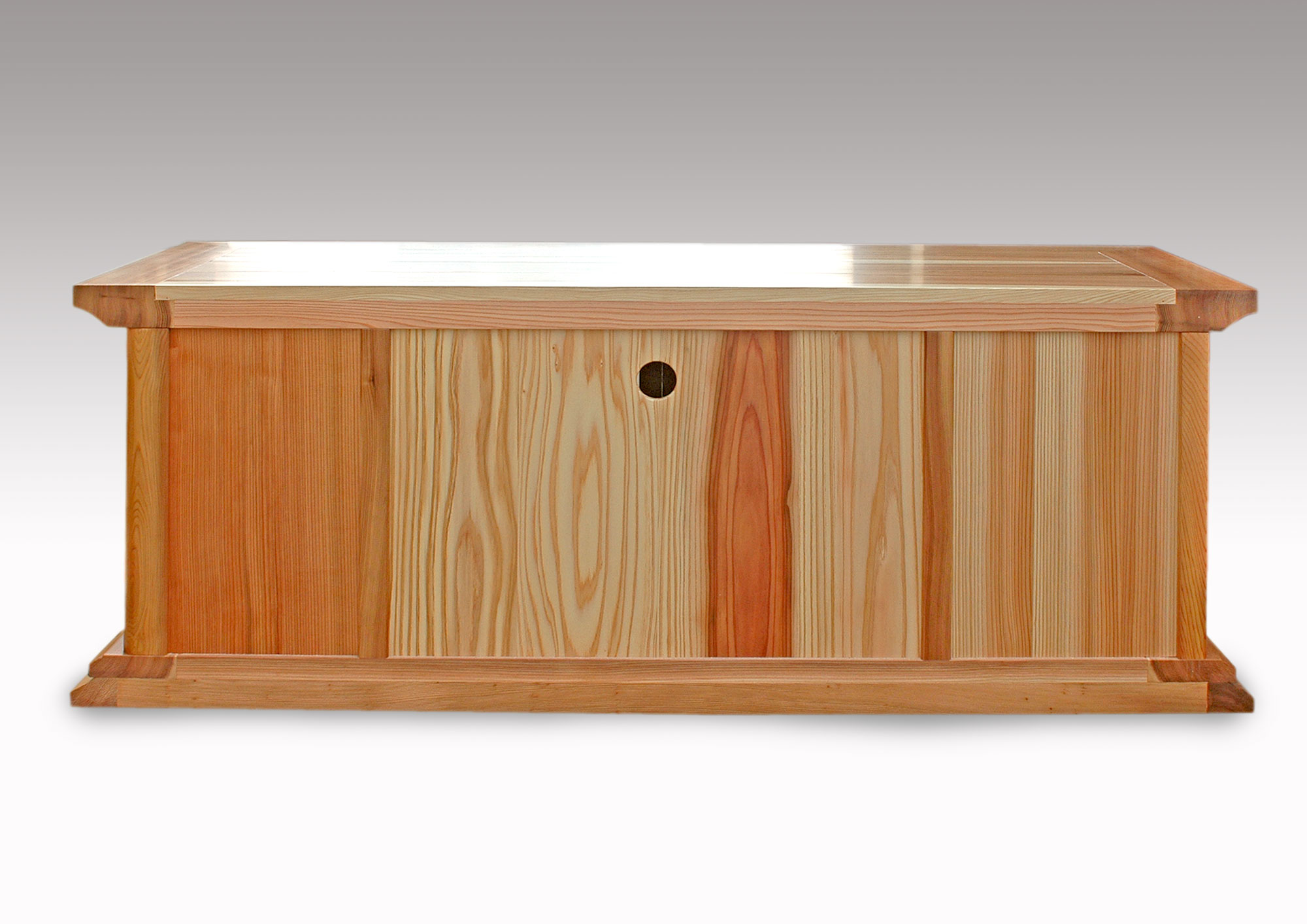 銘木屋久杉という日本有数の価値ある材料を一枚板にこだわり、和のデザインを基調とした心温まる製品です。